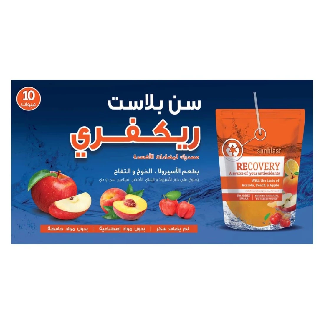 صن بلاست ريكفرى عصير كرز هندي وخوخ وتفاح بدون سكر مضاف 200 ملل حزمة من 10