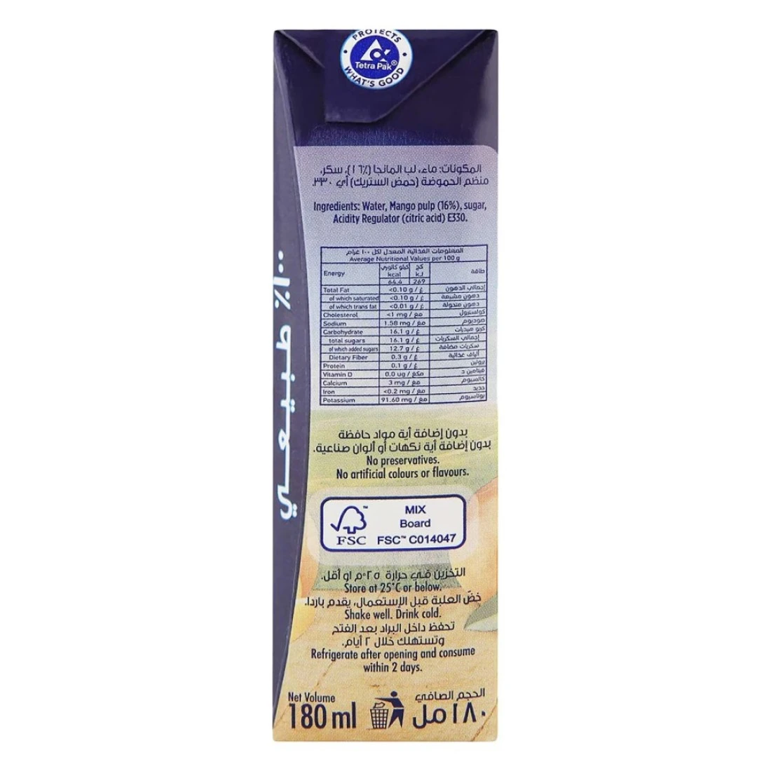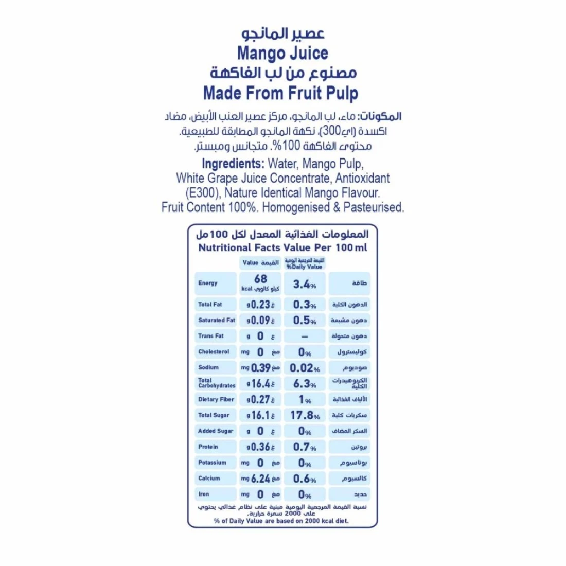 ingredients : ماء، لب مانغو، سكر، منظم حموضة