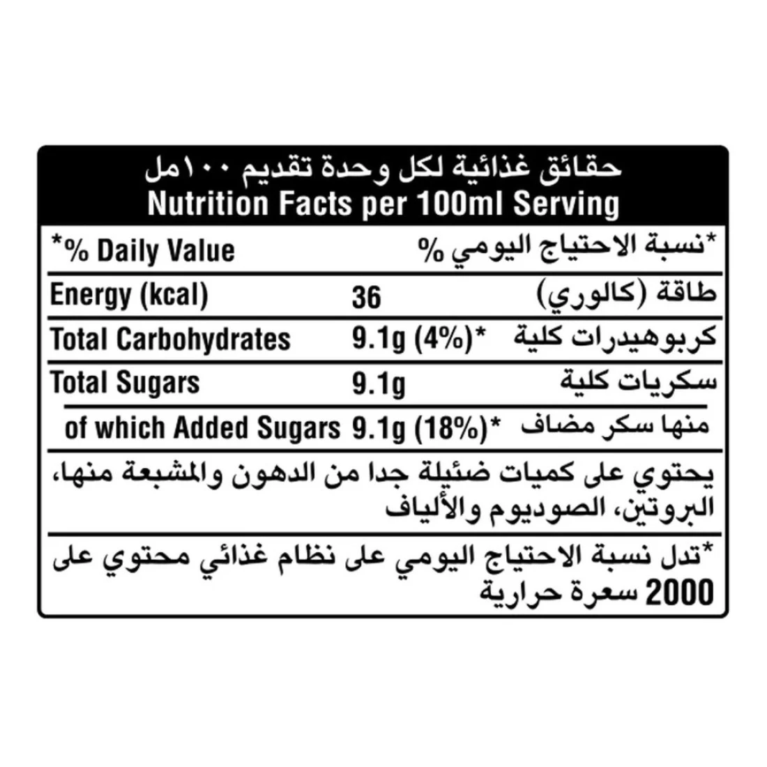 ingredients : مياه غازية، سكر، حمضيات: حمض ستريك، نكهات طبيعية من الزنجبيل وحمضيات، معدل حموضة: سترات الصوديوم، مادة حافظة: بنزوات الصوديوم، لون كراميل