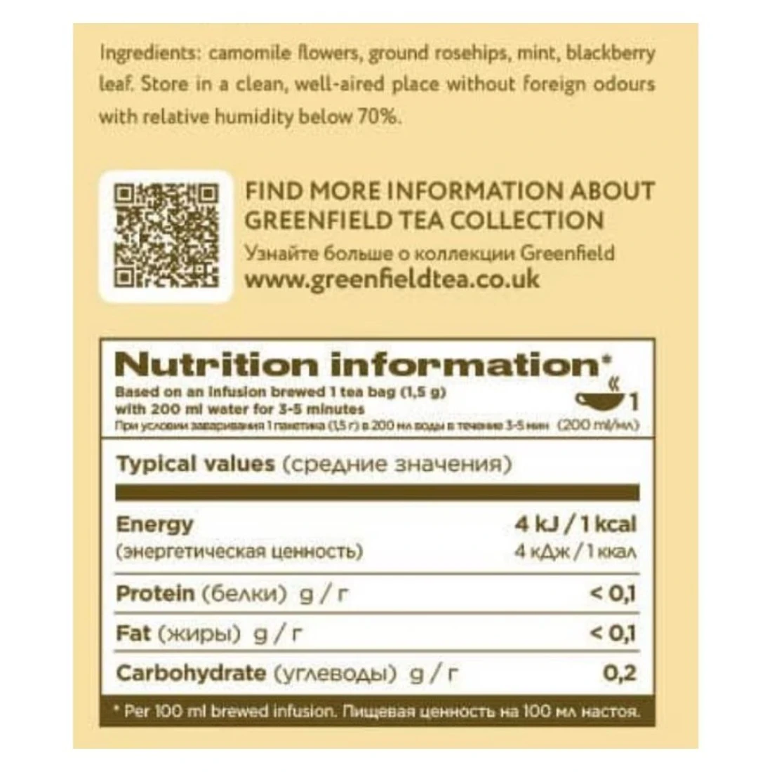 ingredients : زهور البابونج، ثمر الورد المطحون، نعناع، أوراق التوت الأسود