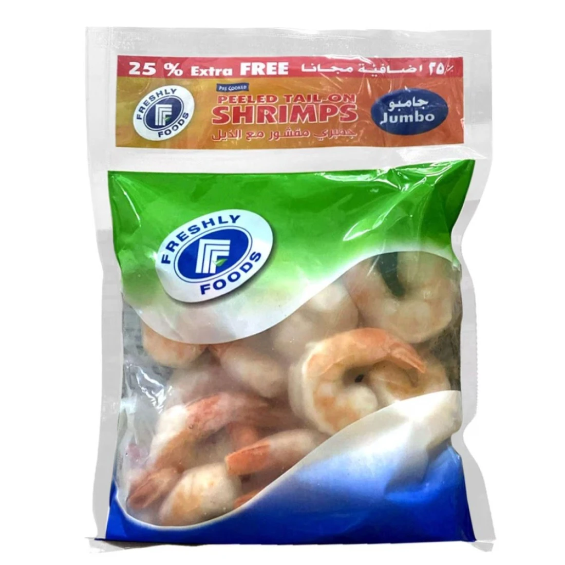 - جمبري فريشلي فودز المقشر بالذيل لذيذ ومرغوب فيه .