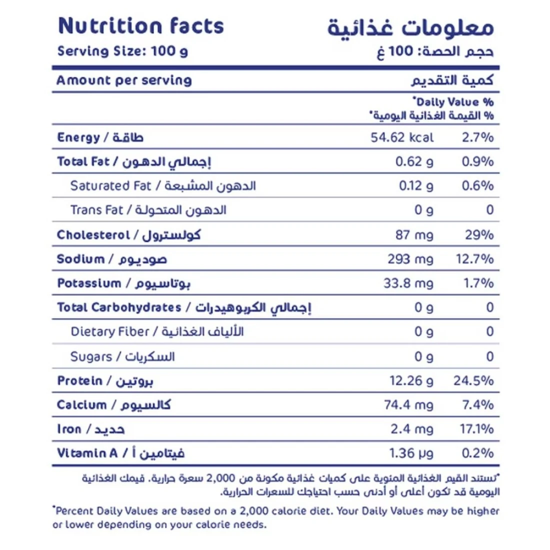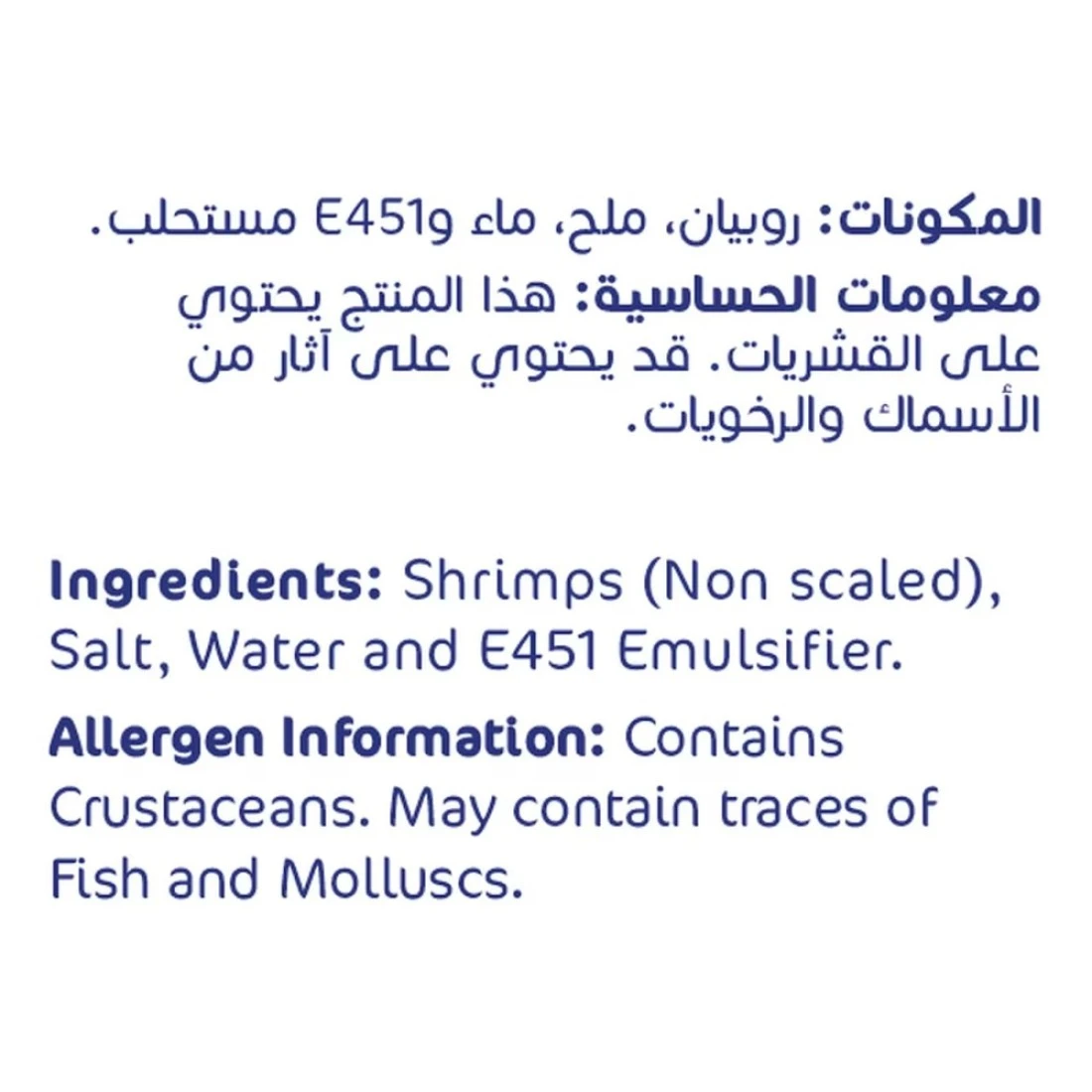 ingredients : روبيان، ملح، ماء