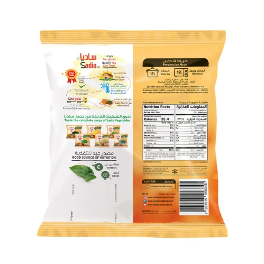 ساديا ملوخية مجمدة 400 غرام هي خيار مناسب ولذيذ لأولئك الذين يحبون مطبخ الشرق الأوسط. الملوخية هي طبق مصري تقليدي مصنوع من أوراق نبات الجوت، وقد سهلت ساديا الإستمتاع بهذا الطبق اللذيذ في المنزل. يتم تعبئة الملوخية المجمدة في كيس سعة 400 غرام، مما يجعلها خيارًا مناسبًا للأفراد أو العائلات. ما عليك سوى تسخينا وتقديمها مع الأرز أو الخبز للحصول على وجبة أصيلة ومرضية. أحد الأشياء الرائعة في ملوخية ساديا المجمدة 400 غرام هو أنها مصنوعة من مكونات عالية الجودة. ساديا هي علامة تجارية موثوقة ومعروفة بإلتزامها بالجودة والذوق الرفيع. يتم تصنيع الملوخية من أوراق الجوت الطازجة التي يتم إختيارها وتجميدها بعناية للحفاظ على نكهتها وقيمتها الغذائية. مع ساديا، يمكنك أن تكون واثقًا من أنك تحصل على منتج لذيذ ومغذي في نفس الوقت. ميزة أخرى لساديا ملوخية مجمدة 400 غرام هي تنوعها. في حين يتم تقديم الملوخية بشكل تقليدي مع الأرز أو الخبز، يمكنك أيضًا الإبداع وإستخدامها في أطباق أخرى. أضفها إلى الحساء أو اليخنة أو أطباق المكرونة للحصول على نكهة فريدة ولذيذة. من السهل تقسيم الملوخية المجمدة وتخزينها، لذلك يمكنك إستخدام الكثير أو القليل حسب حاجتك لوصفاتك. مع ساديا، لديك إمكانيات لا حصر لها للإستمتاع بهذا الطبق من الشرق الأوسط التقليدي.