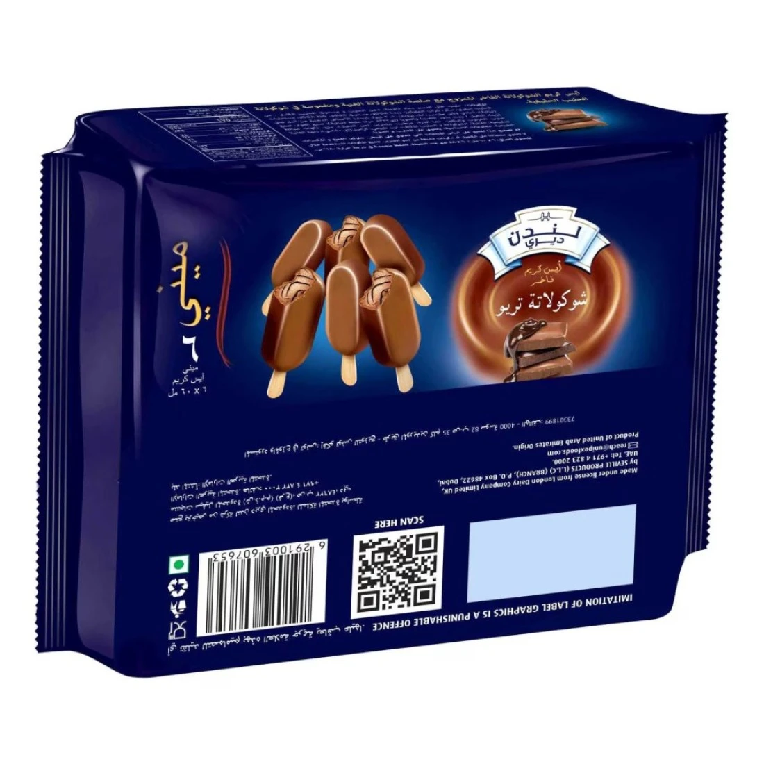لندن ديري لوح آيس كريم ثلاثي الشوكولاته 60 ملل حزمة من 6