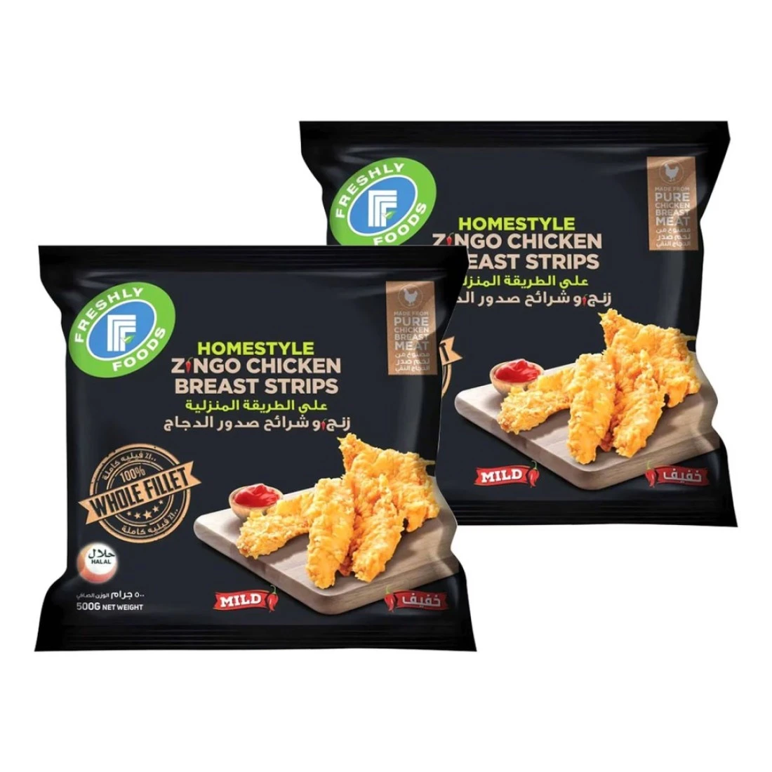 فريشلي فروزن فودز شرائح صدور دجاج زينجو على الطريقة المنزلية خفيفة 500 غرام حزمة من 2