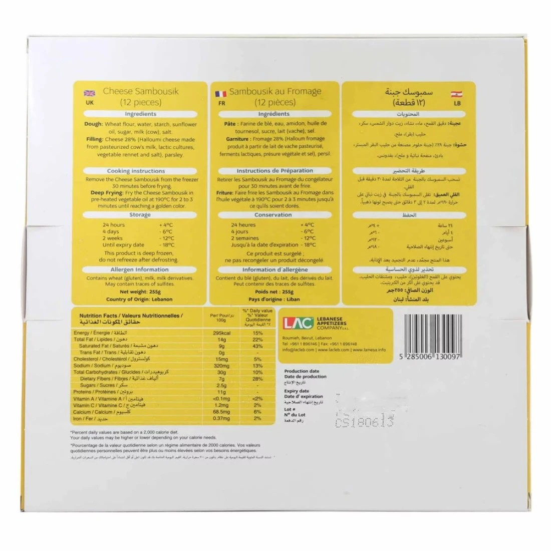 - لاميسا سمبوسة الجبنة 220 غرام هي مادة غذائية مقرمشة، لذيذة ومقلية بالجبنة
