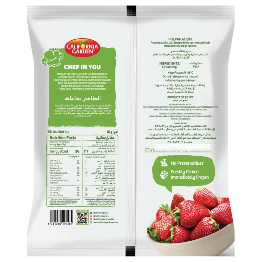 - نضارة مضمونة: تقدم كاليفورنيا غاردن فراولة 800 غرام من الفراولة الطازجة الممتازة ، مما يضمن المذاق والجودة المثلى