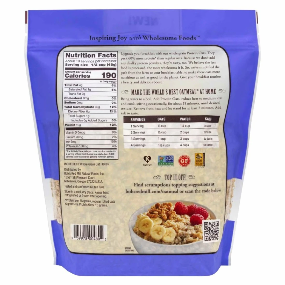 بوبز ريد ميل شوفان بروتيني خالي من الجلوتين 907 غرام