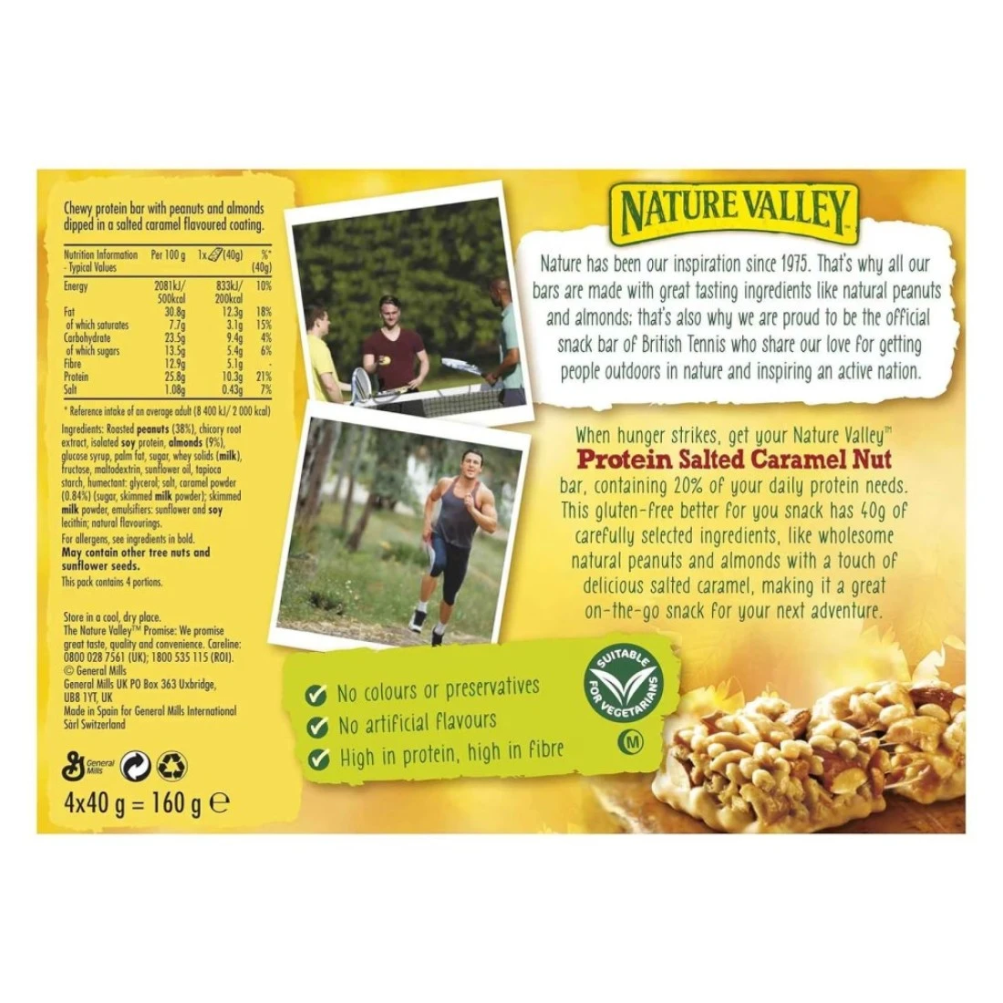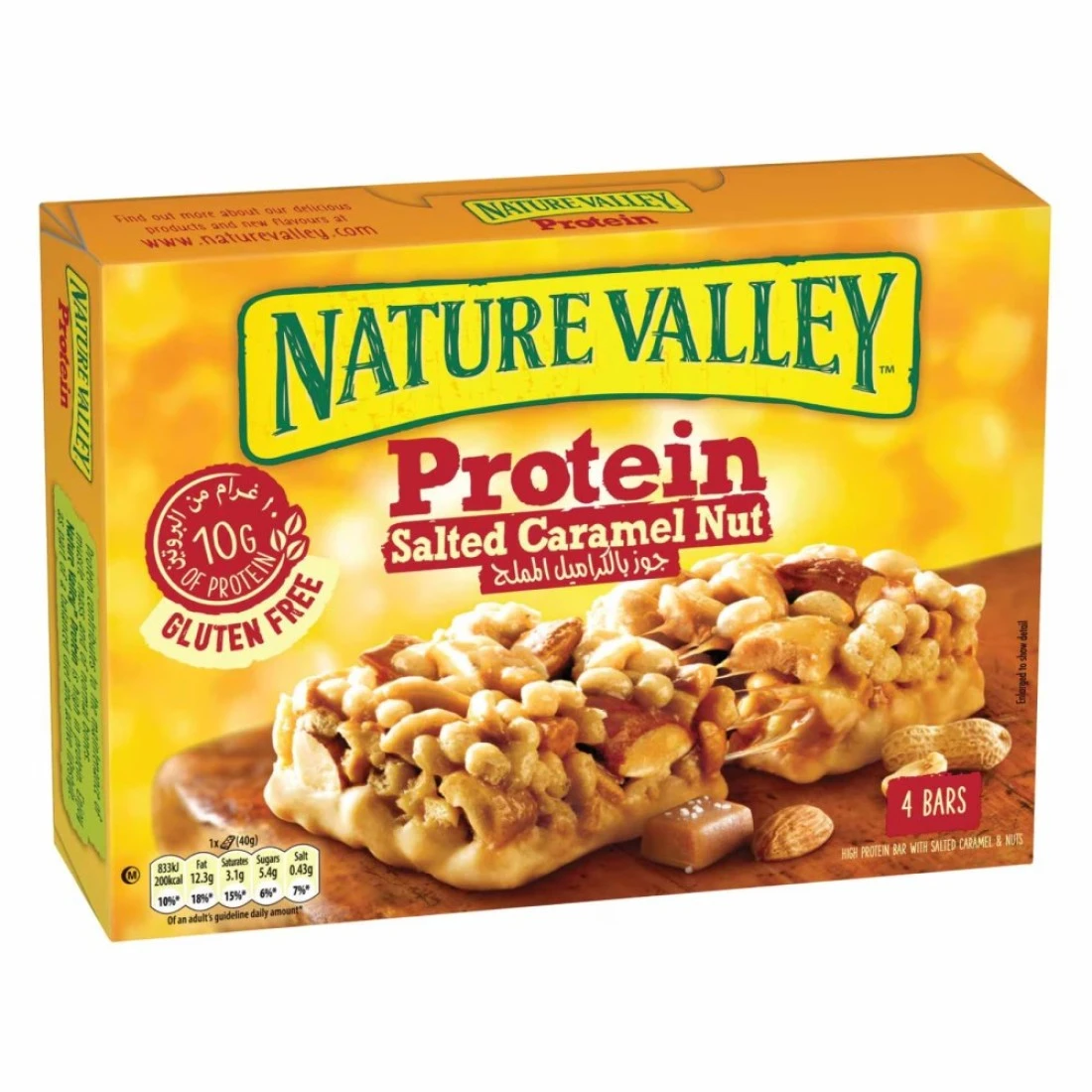 ناتشر فالي ألواح بروتين جوز الكراميل المملح، 40 غرام، من 4 قطع