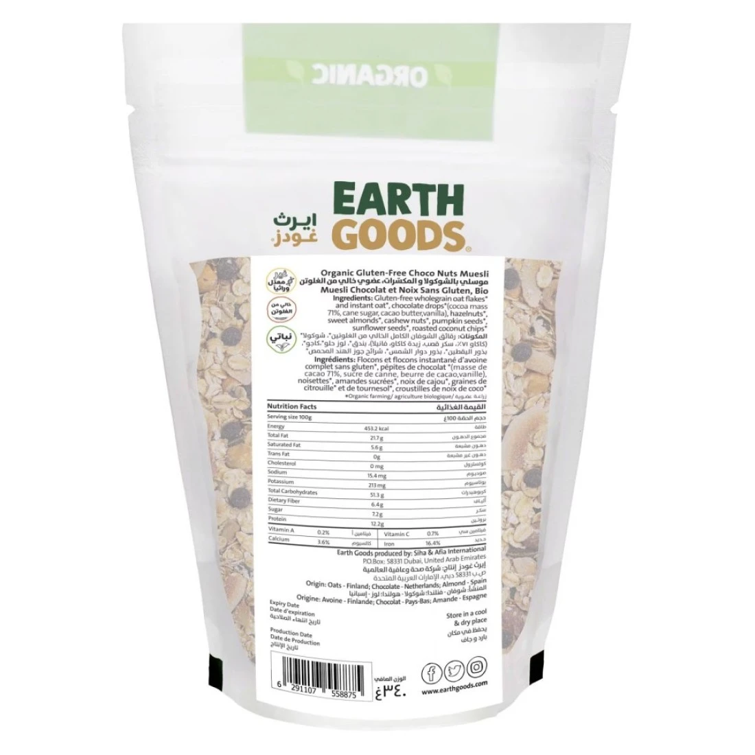 إيرث غودز موسلي عضوي خال من الغلوتين بالشوكولاته والمكسرات 340 غرام