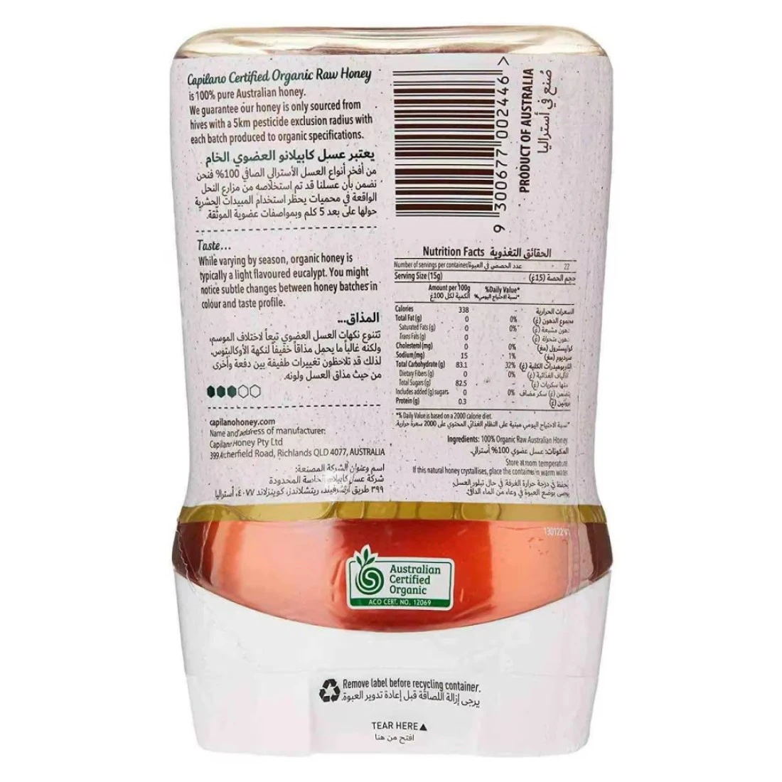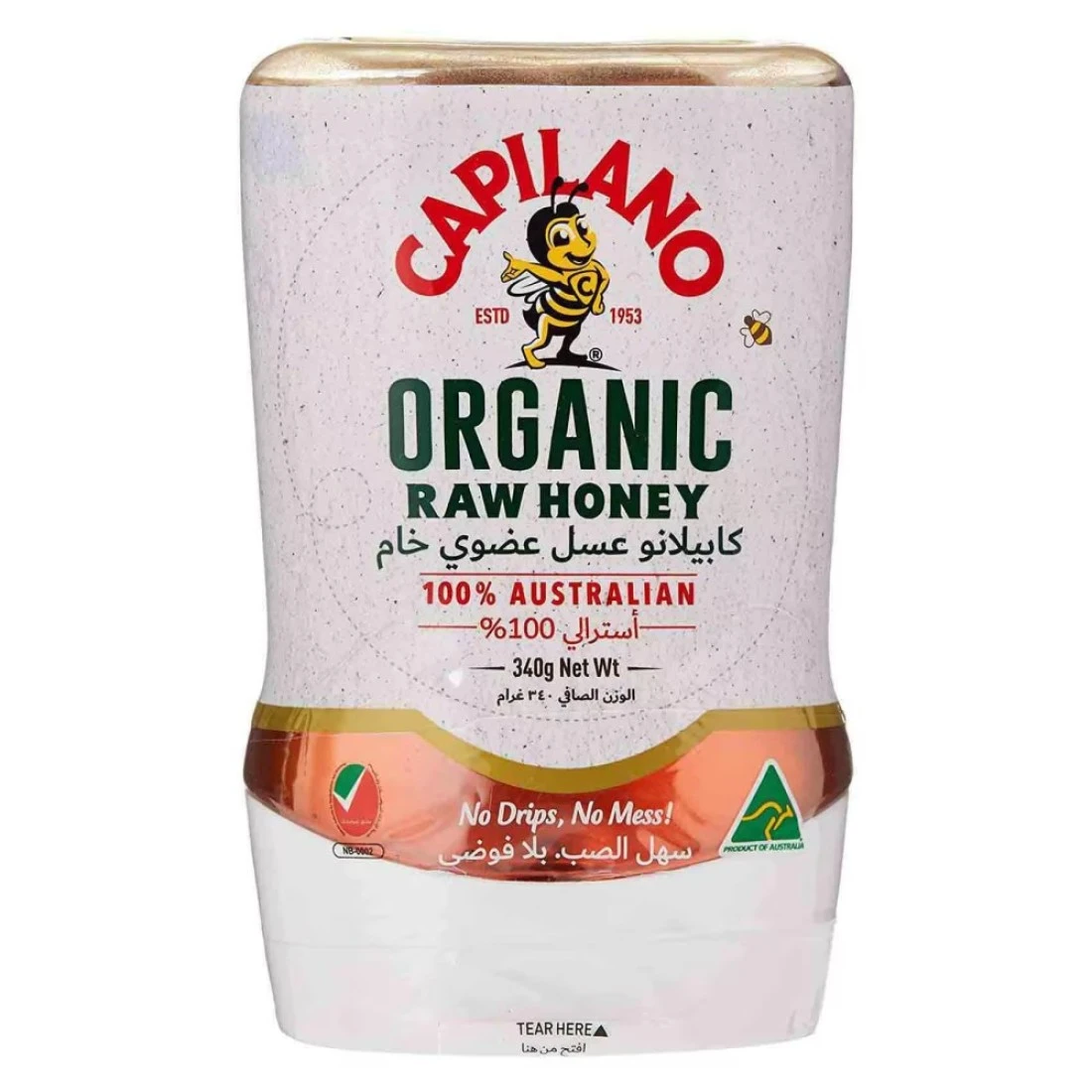 - عسل كابيلانو العضوي الطبيعي هو مزيج نقي فاخر من عسل الكافور وعسل نباتات الأرض الأصلية