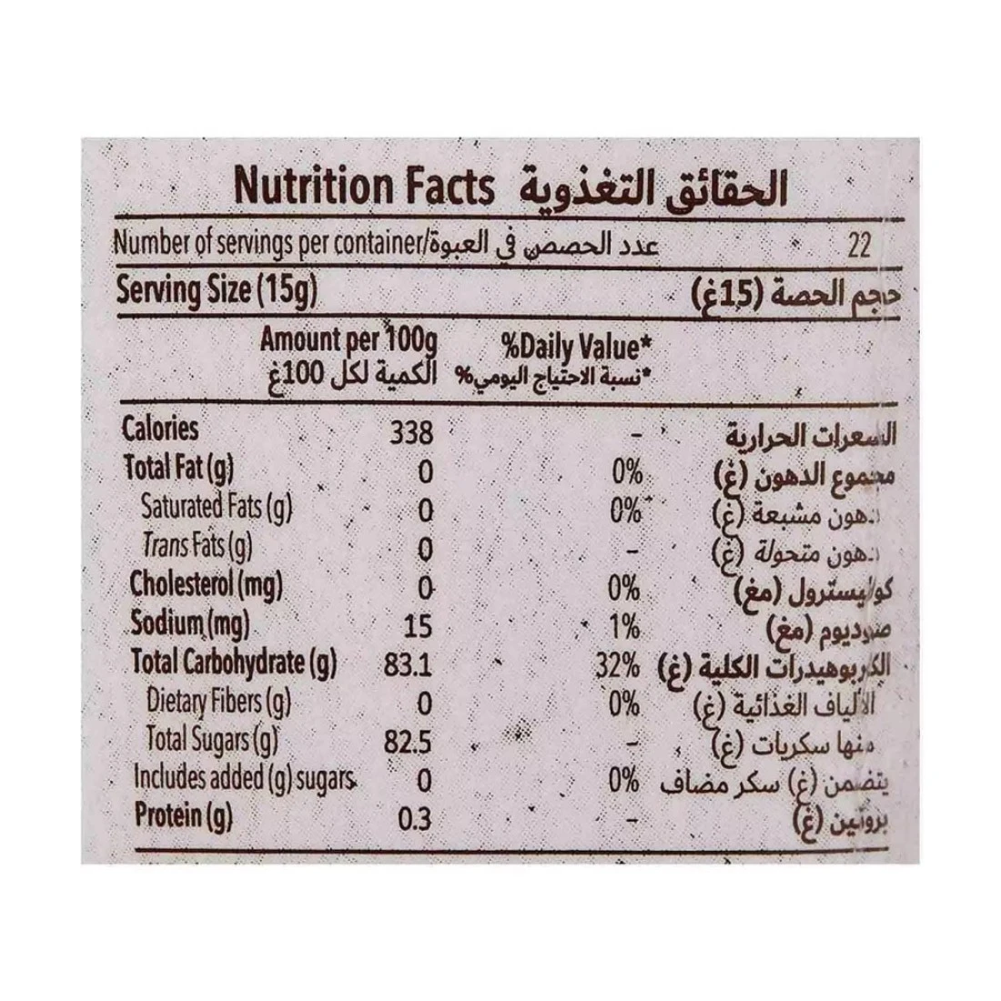 - يحتوي على السكريات التي توجد بشكل طبيعي في العسل