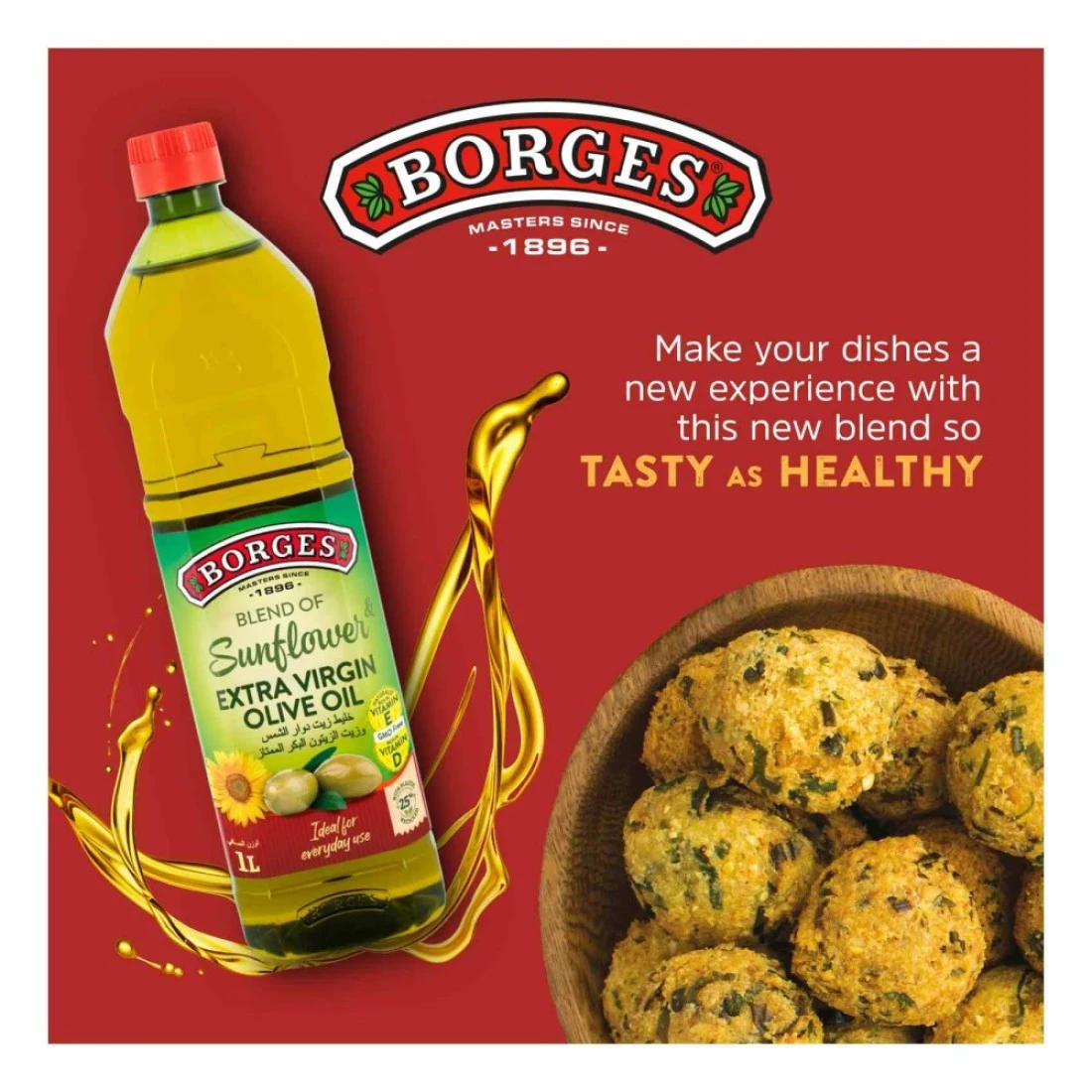 مزيج بورجيس من زيت عباد الشمس وزيت الزيتون البكر الممتاز هو زيت طهي ممتاز يجمع بين النكهة الخفيفة والمكسراتية لزيت عباد الشمس مع المذاق الغني والقوي لزيت الزيتون البكر الممتاز. معبأ في قارورة مناسبة سعة لتر واحد، هذا المزيج متعدد الإستخدامات مثالي للطهي والقلي وتتبيل السلطات. يعزز ملفه المتوازن النكهات الطبيعية لأطباقك مع توفير الدهون الصحية ومضادات الأكسدة. مثالي للطهي اليومي والوصفات الشهية، يقدم مزيج بورجيس إضافة رائعة لأي مطبخ. إستمتع بالتناغم المثالي بين الذوق والصحة مع كل قطرة!