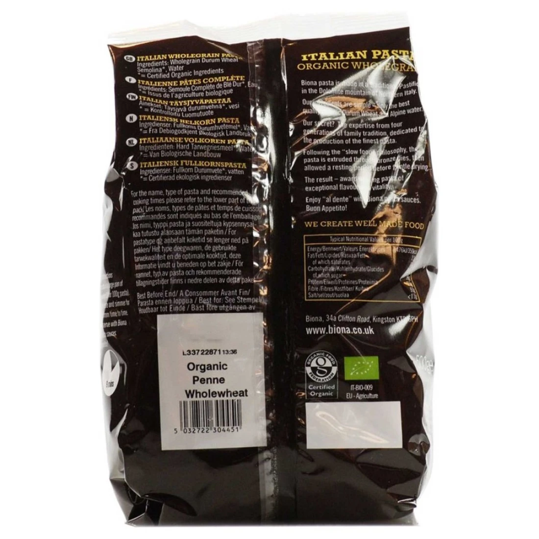 بيونا أورغانيك معكرونة ايطالية بالحبوب الكاملة 500 غرام حزمة من 12