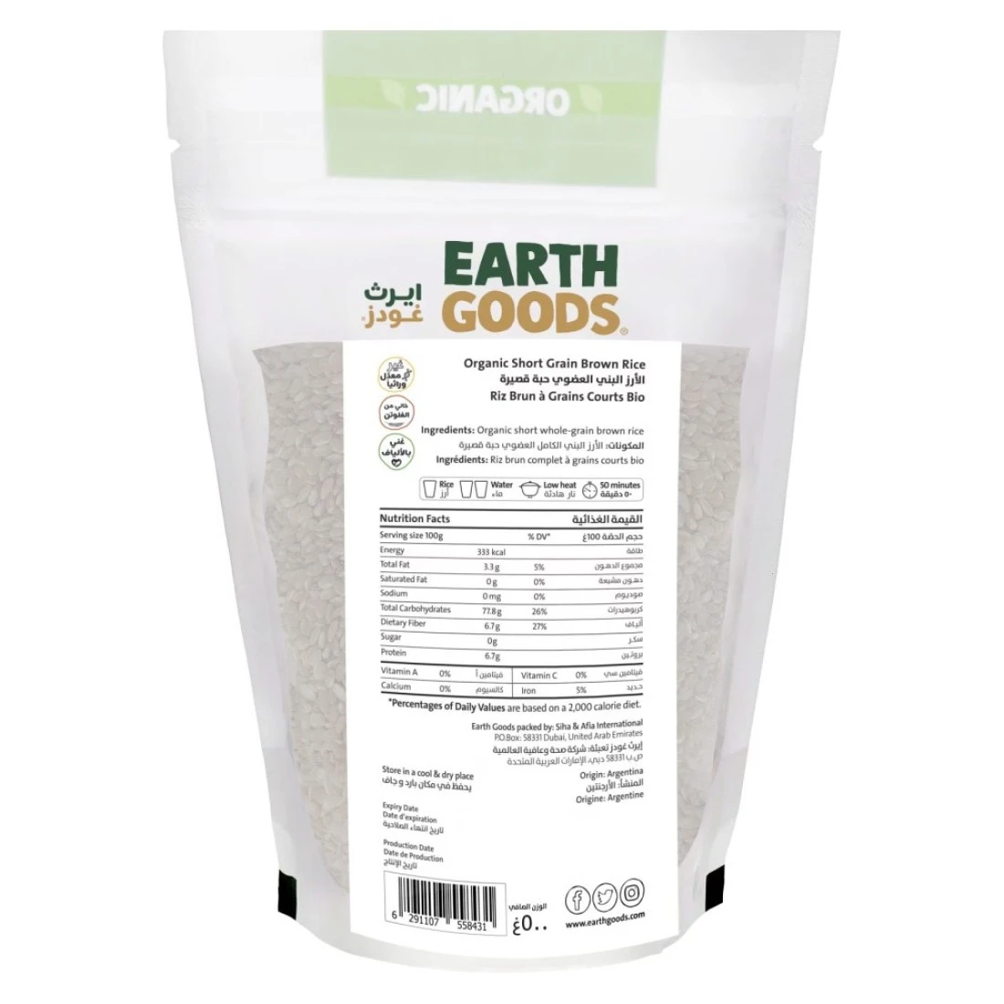 ايرث غودز أرز بني عضوي قصير الحبة 500 غرام