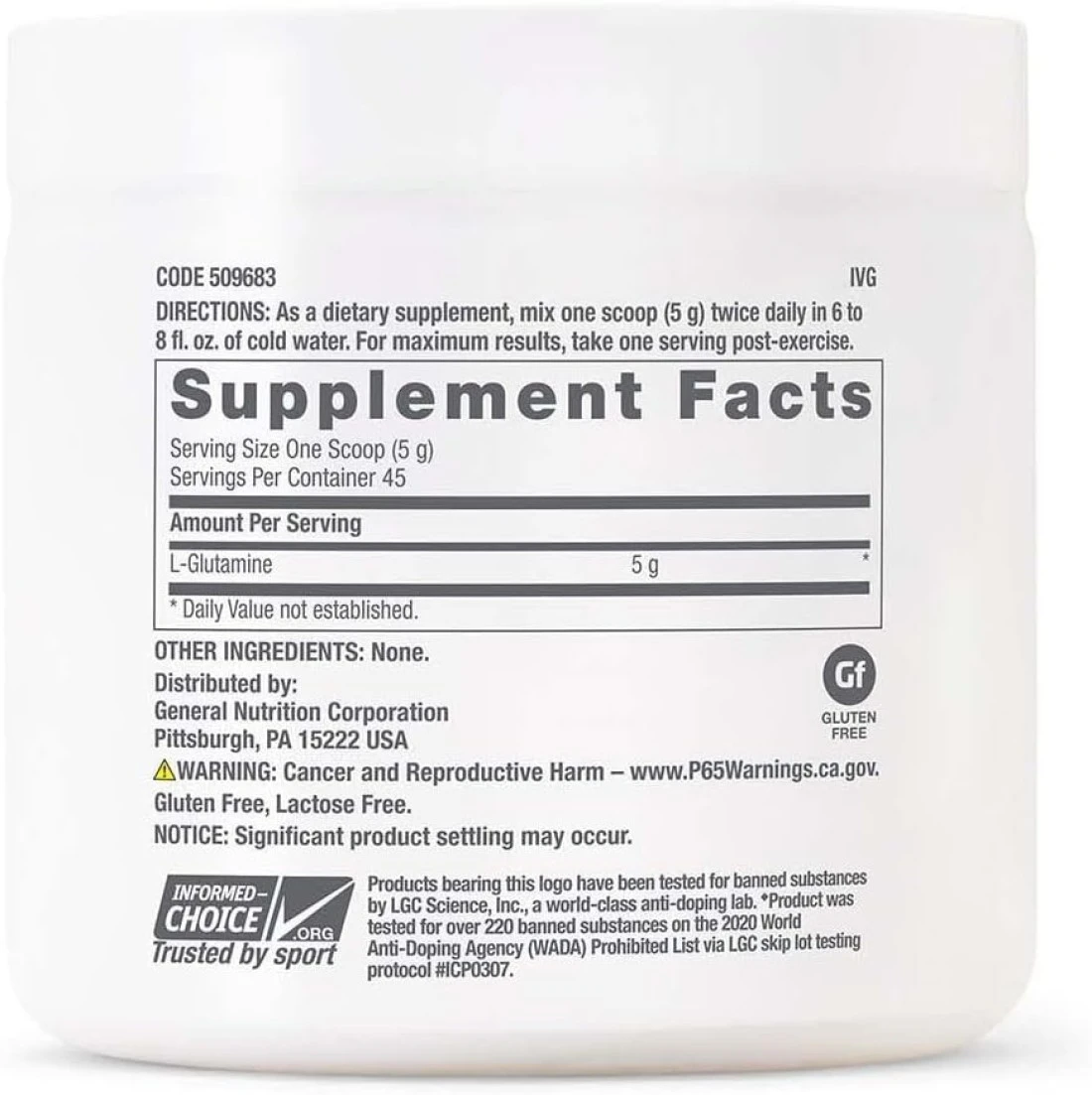 GNC Pro Performance® L-Glutamine 5000 mg (Unflavored 45 Servings)