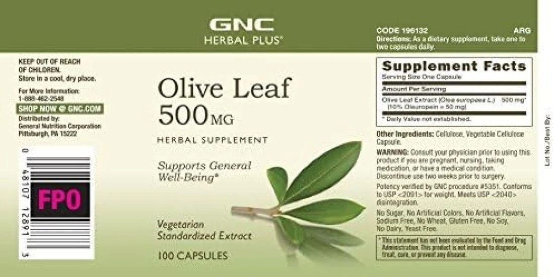 GNC Herbal Plus Olive Leaf 500 mg