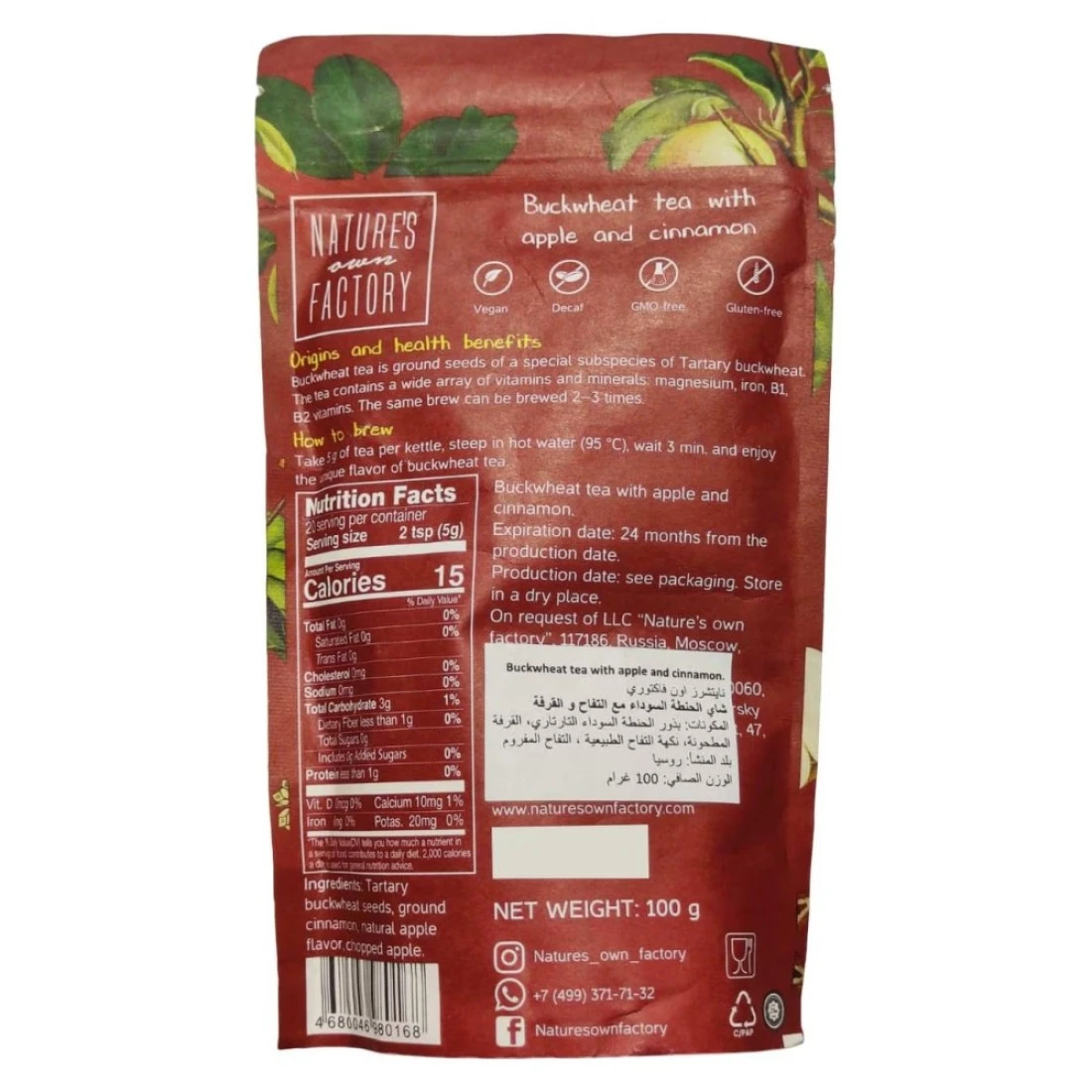 ingredients : بذور الحبوب السوداء تتارية، قرفة مطحونة، تفاح مفروم، نكهة طبيعية