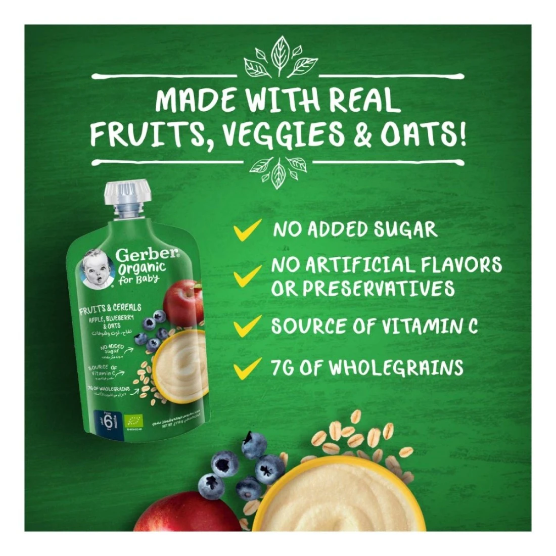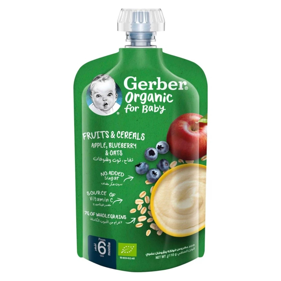جيربر حبوب وفواكه عضوية مع التفاح والتوت الأزرق والشوفان، 110 غرام