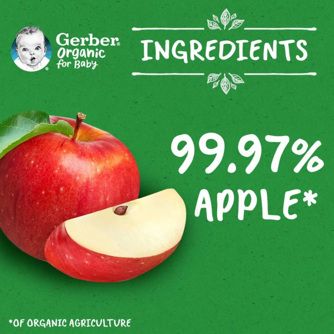 ingredients : هريس التفاح (99.97%)، مضاد للأكسدة (حمض الأسكوربيك)