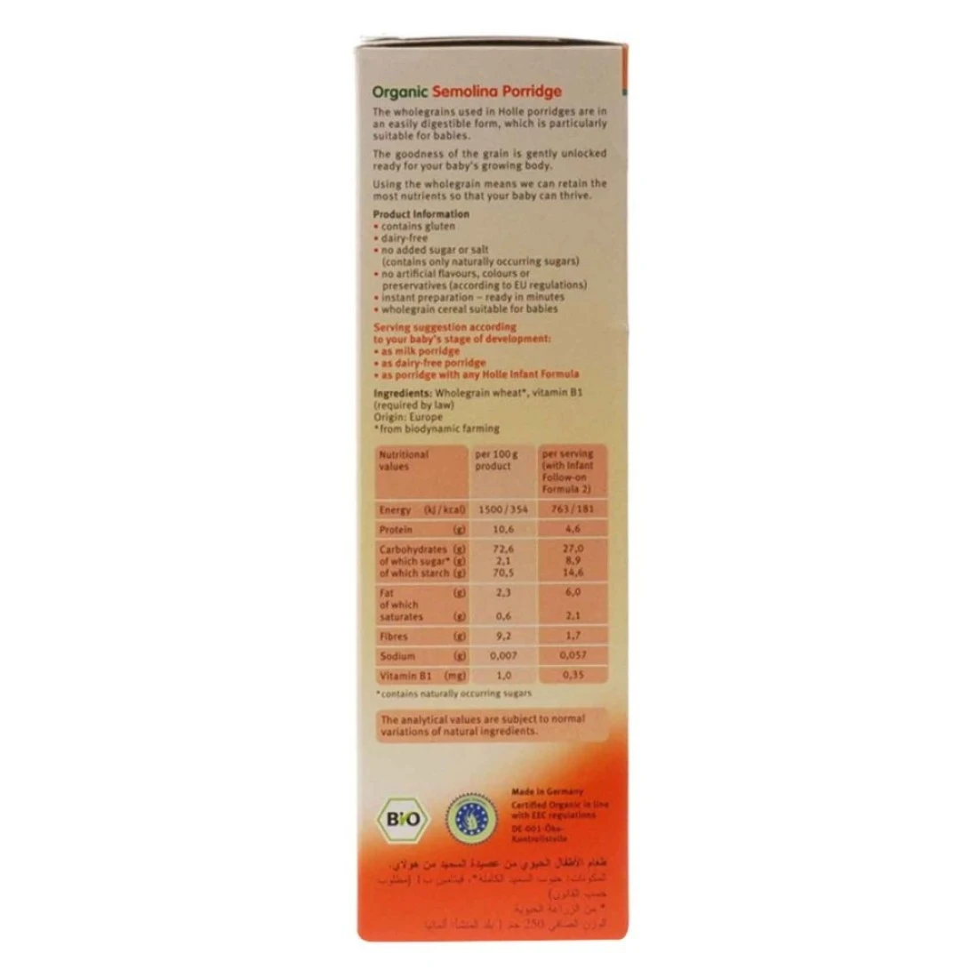 - عصيدة السميد العضوية من هول أورغاينك مصنوعة من القمح الصافي المزروع بطريقة حيوية li>