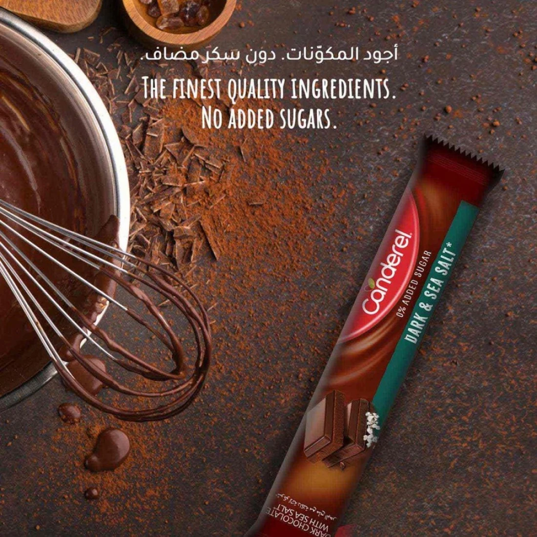 يقدم قالب كاندريل الشوكولاتة الداكنة وملح البحر بدون سكر مضاف تجربة شوكولاتة غنية ورائعة بدون سكر مضاف. مصنوع من الكاكاو الفاخر، المحلى بالمالتيتول والستيفيا، ومعزز بقليل من ملح البحر، هذا القالب يوفر التوازن المثالي بين النكهة المكثفة والملوحة الخفيفة. إنه مثالي لأولئك الذين يبحثون عن تحلية خالية من الذنب تتماشى مع أهدافهم الصحية مع إشباع رغباتهم الشديدة.