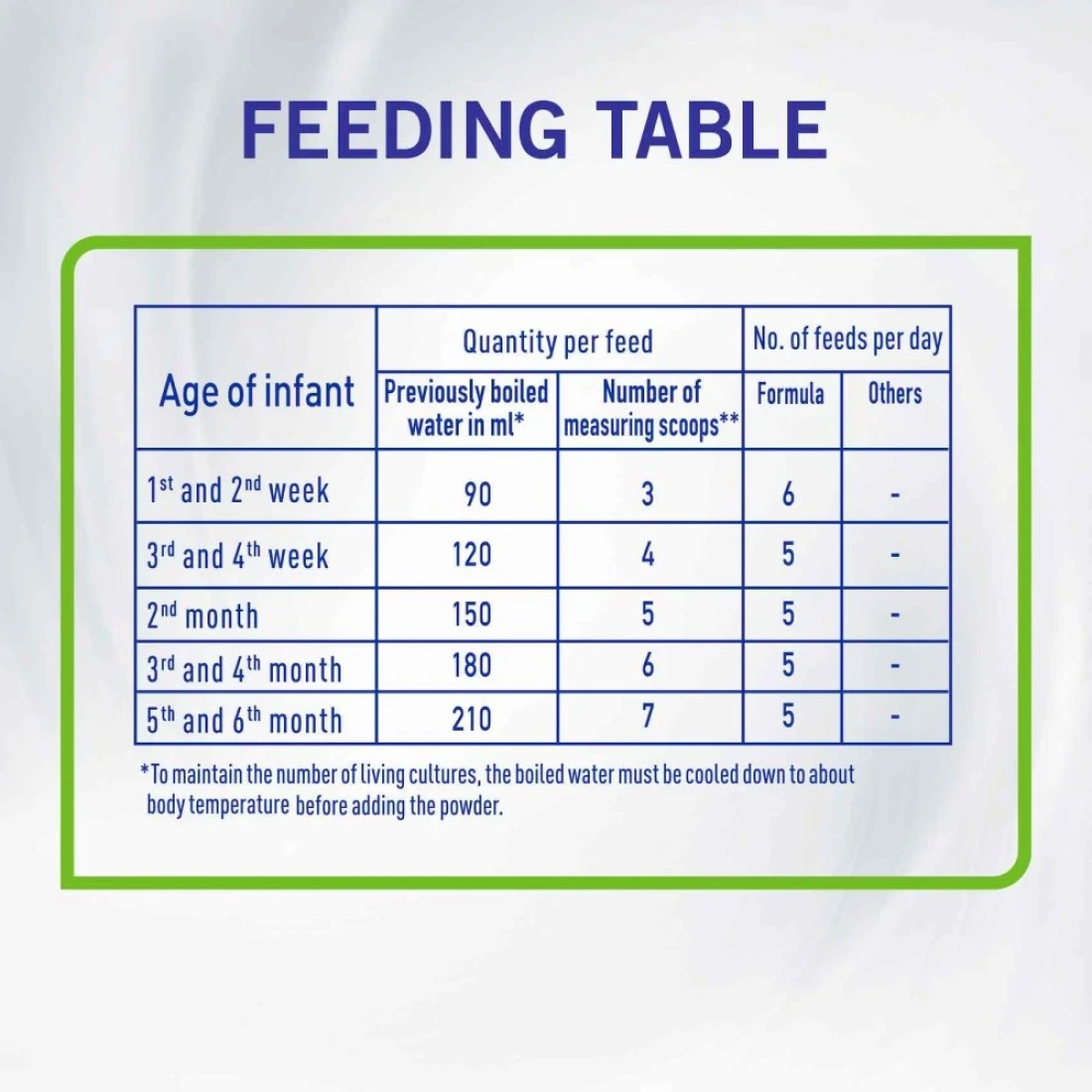 - مصمم للأطفال من الولادة إلى 6 أشهر، ويوفر العناصر الغذائية الأساسية للنمو الصحي