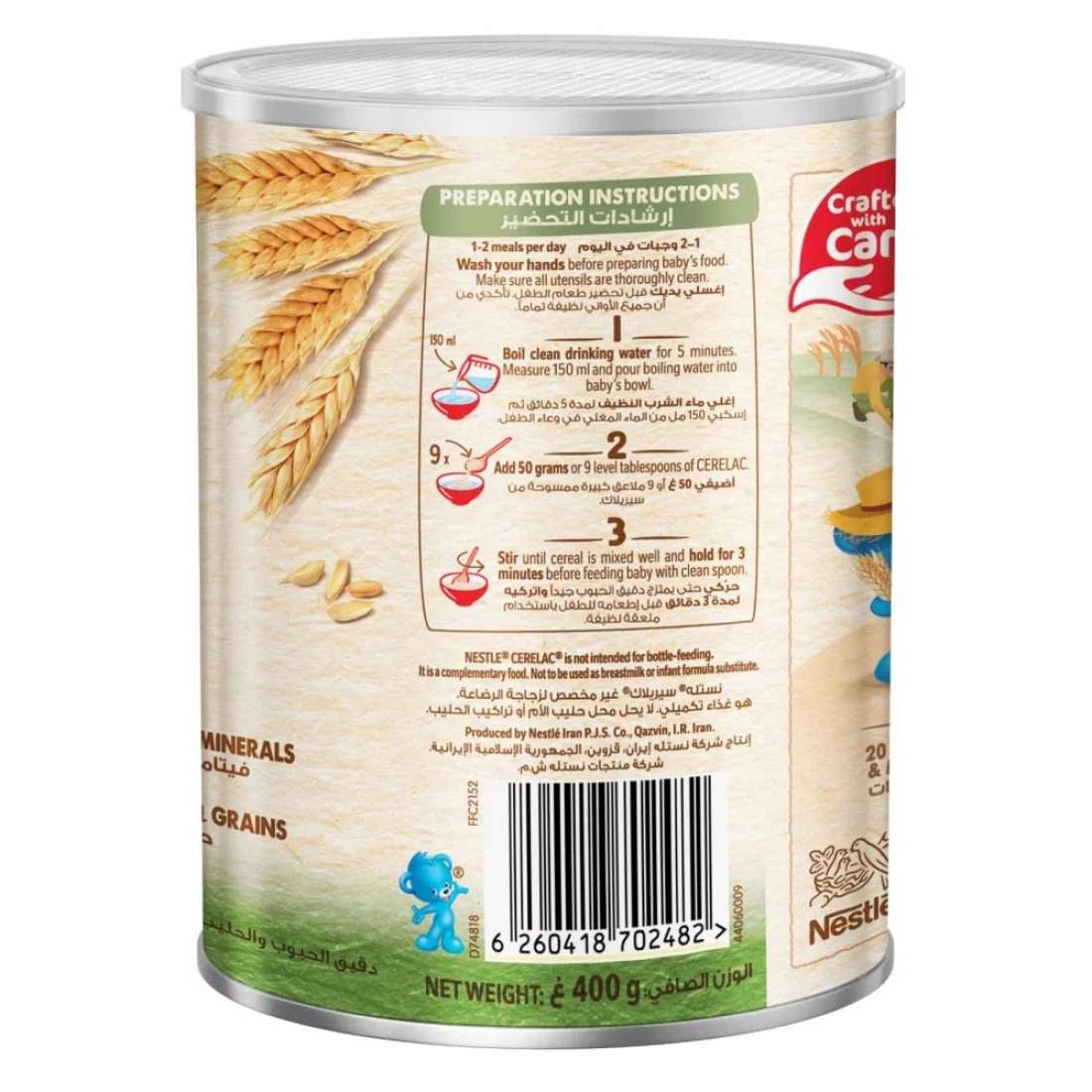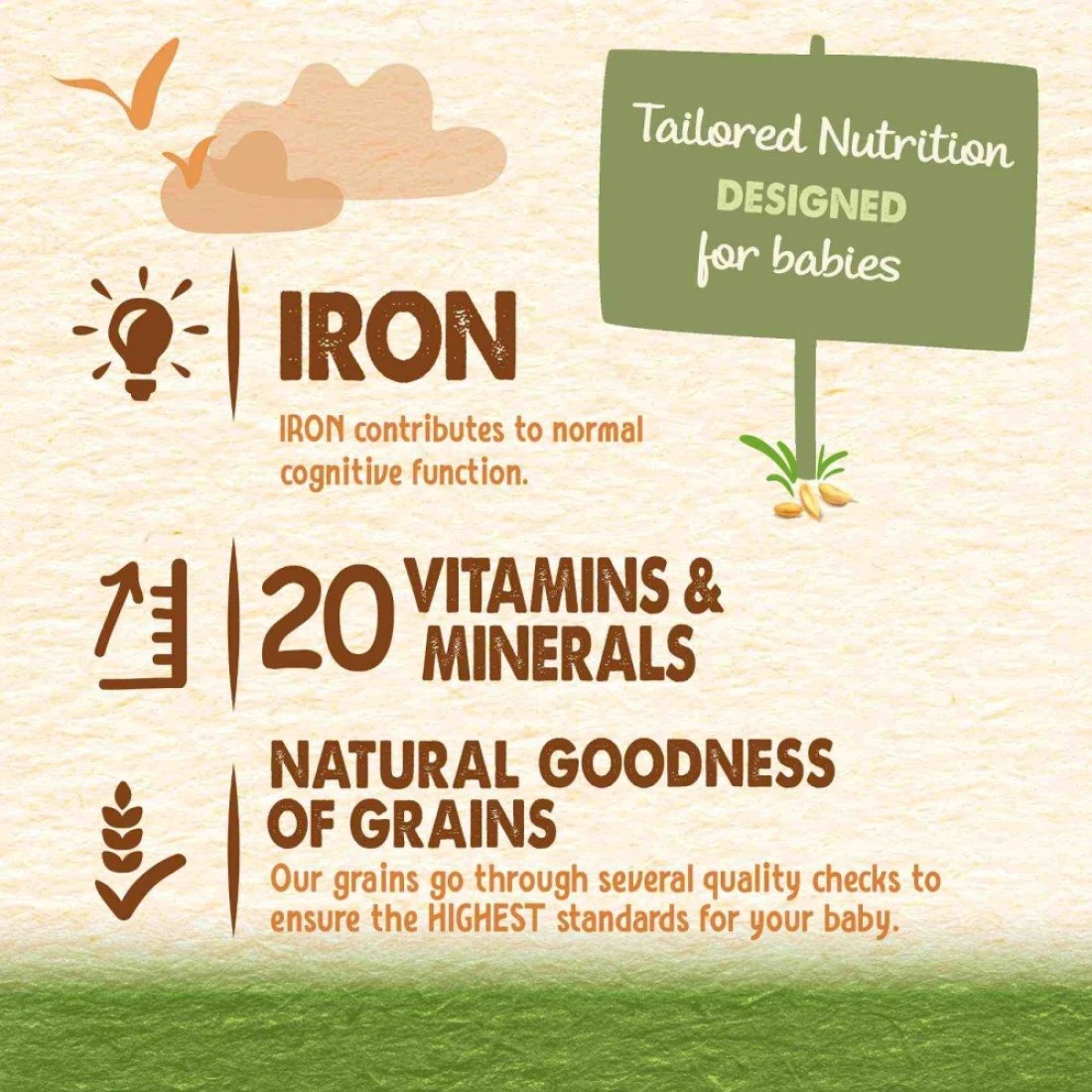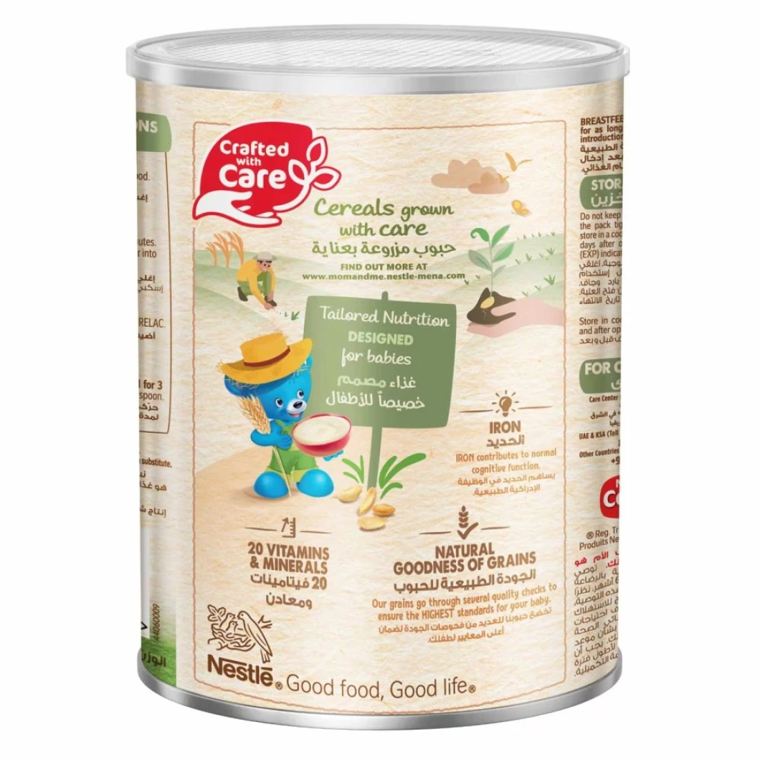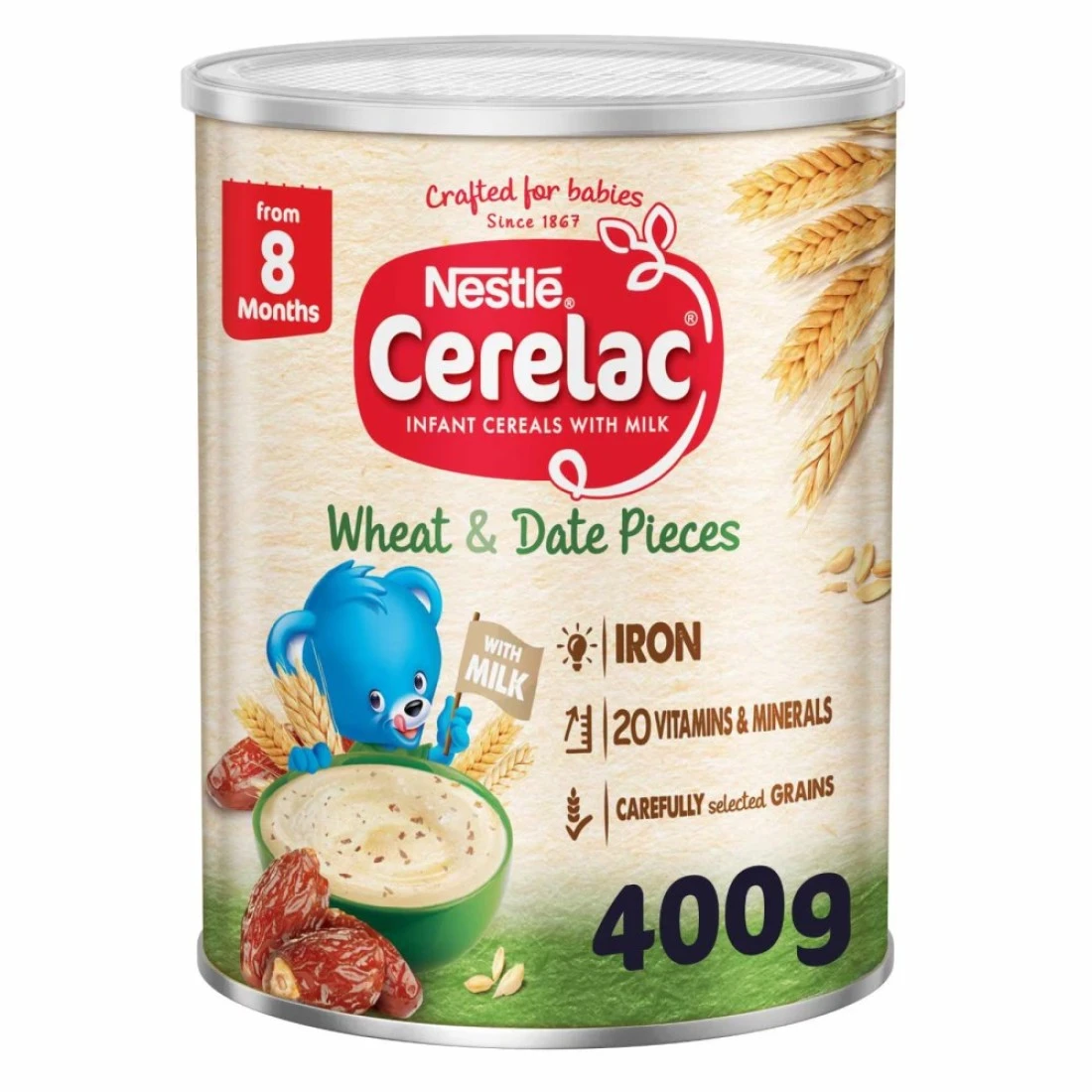 نستله سيريلاك حبوب للرضع بالقمح وقطع التمر مع الحليب مدعمة بـ 16 فيتامين ومعدن (بما في ذلك الحديد والكالسيوم وفيتامين D). محضرة بحبوب مختارة بعناية ولا تحتوي على مواد حافظة أو ألوان أو نكهات صناعية. وجبة مصممة خصيصًا للأطفال من عمر 8 أشهر فما فوق.