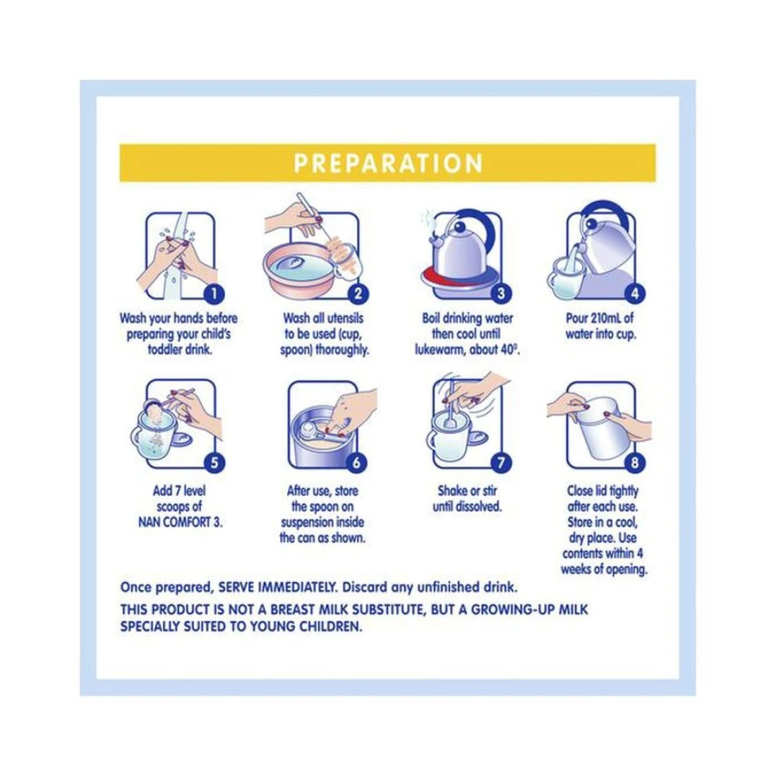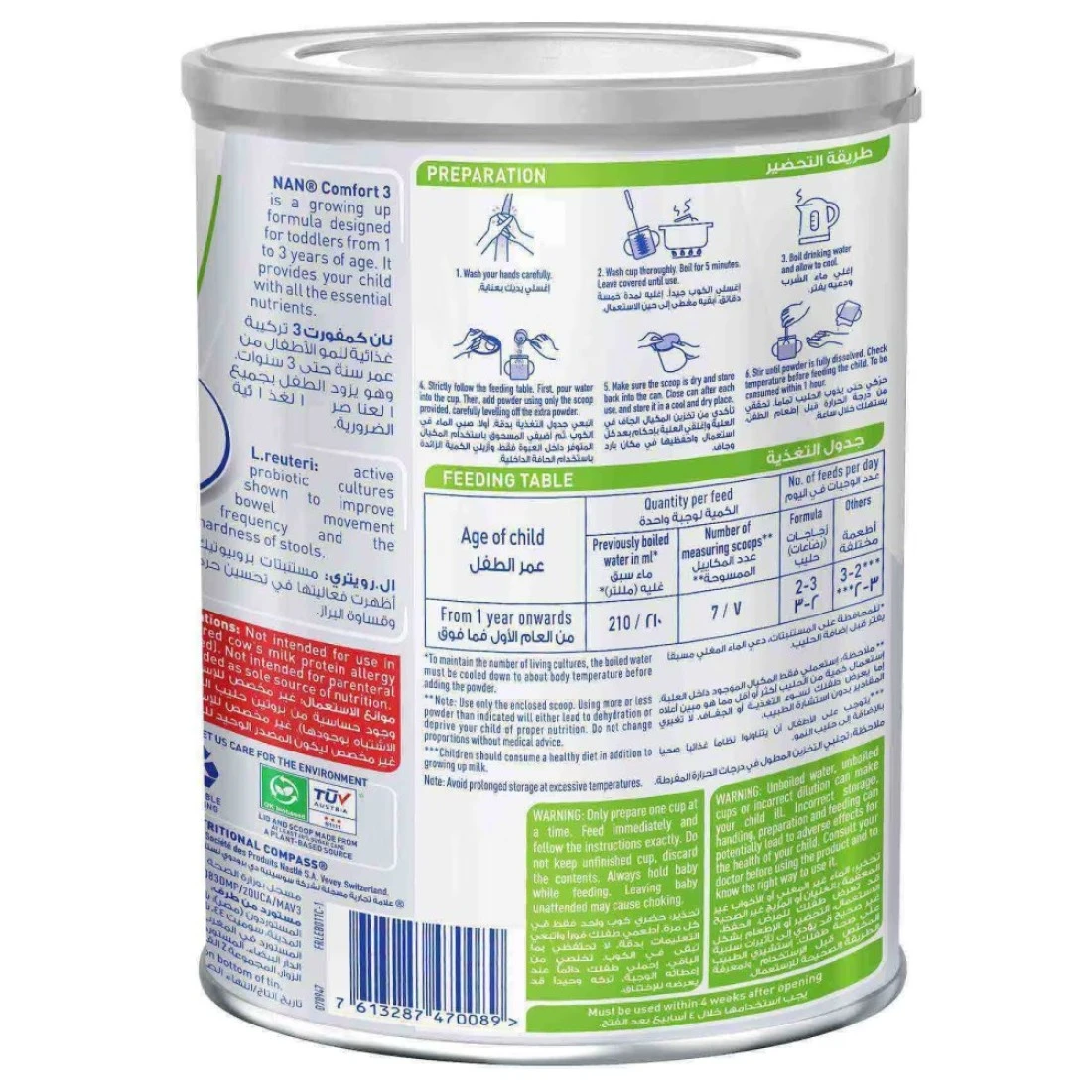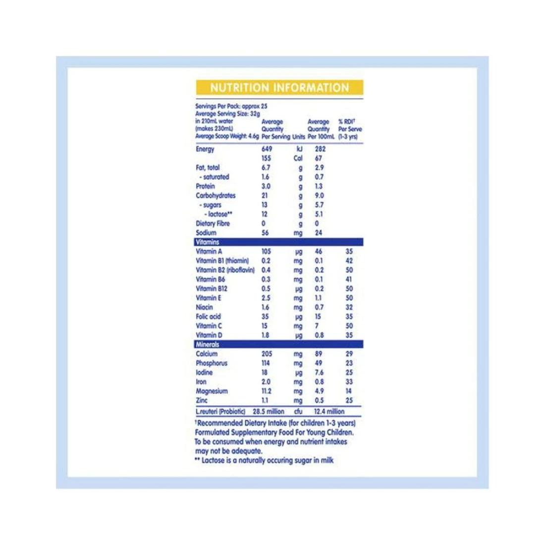 - مصمم للأطفال الصغار من سن 1 إلى 3 سنوات، ويوفر العناصر الغذائية الأساسية للنمو والتطور الصحي