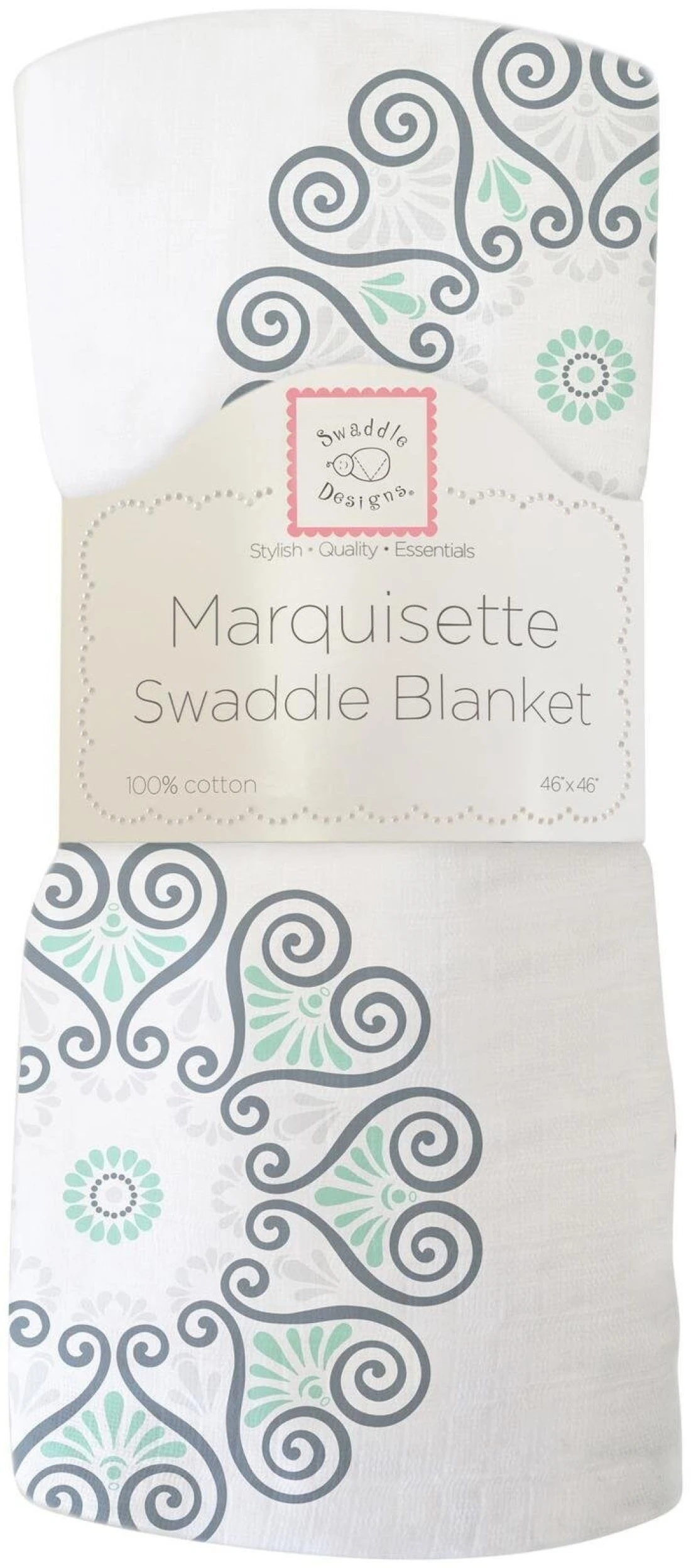 SwaddleDesigns Marquisette Receiving Swaddle Blanket for Baby Boys & Girls, Soft Premium Cotton Muslin, Best Shower Gift, SeaCrystal Medallions, Parent Picks Award Winner Small