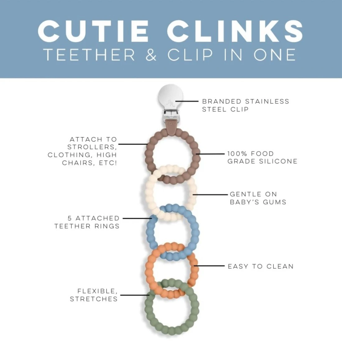 Ryan Rose Cutie Clinks Attachable Teether Chew Toy for Babies Handsome
