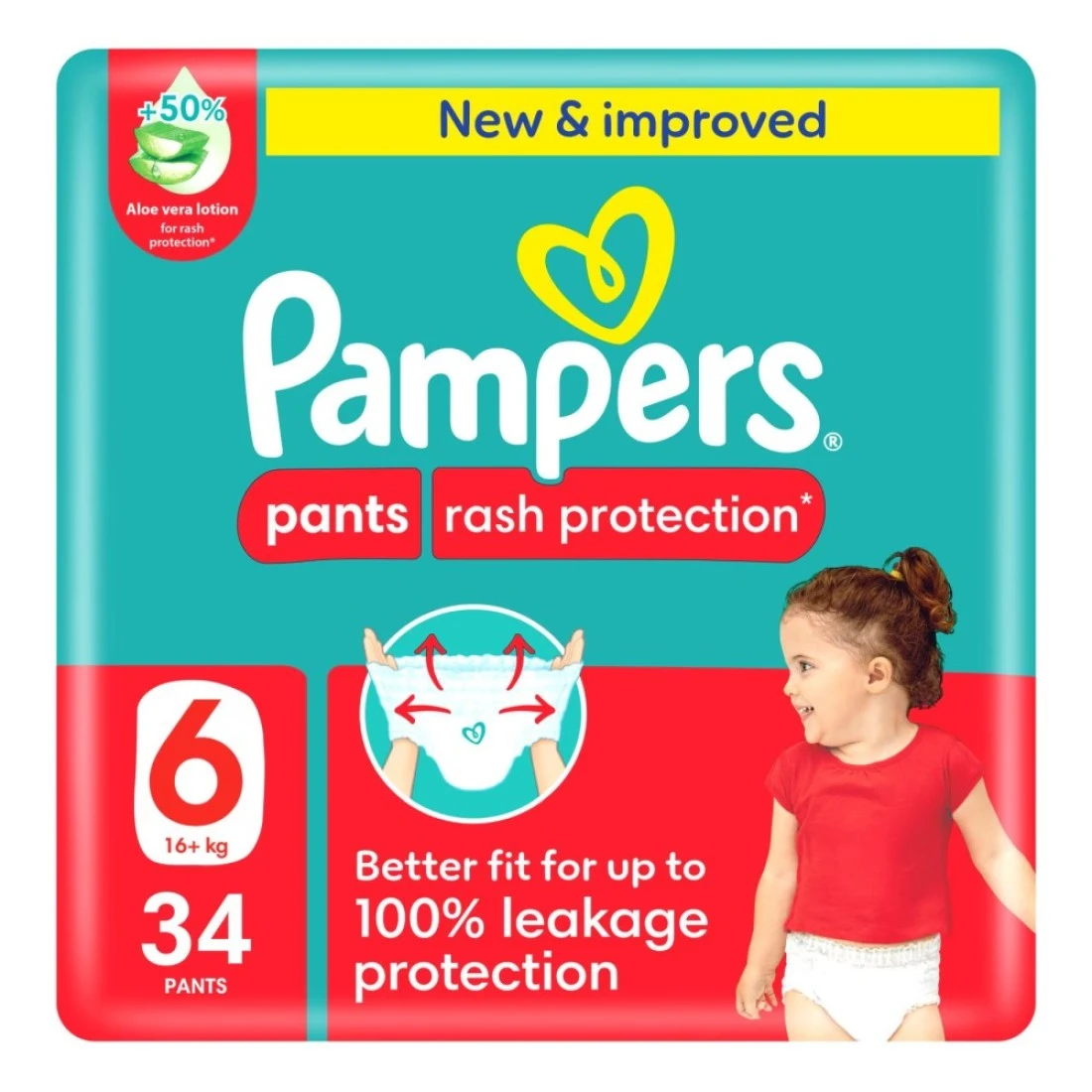 بامبرز حفاض بتصميم سروال للحماية من الطفح الجلدي مقاس 6 للأطفال بوزن 16 كغ + 34 حفاض