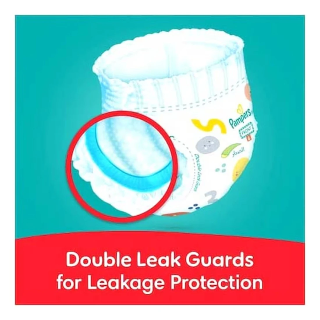 - تقنية قفل التسرب: توفر تقنية قفل التسرب من بامبرز ما يصل إلى 12 ساعة من الحماية ضد التسرب، مما يحافظ على طفلك جافًا أثناء الليل