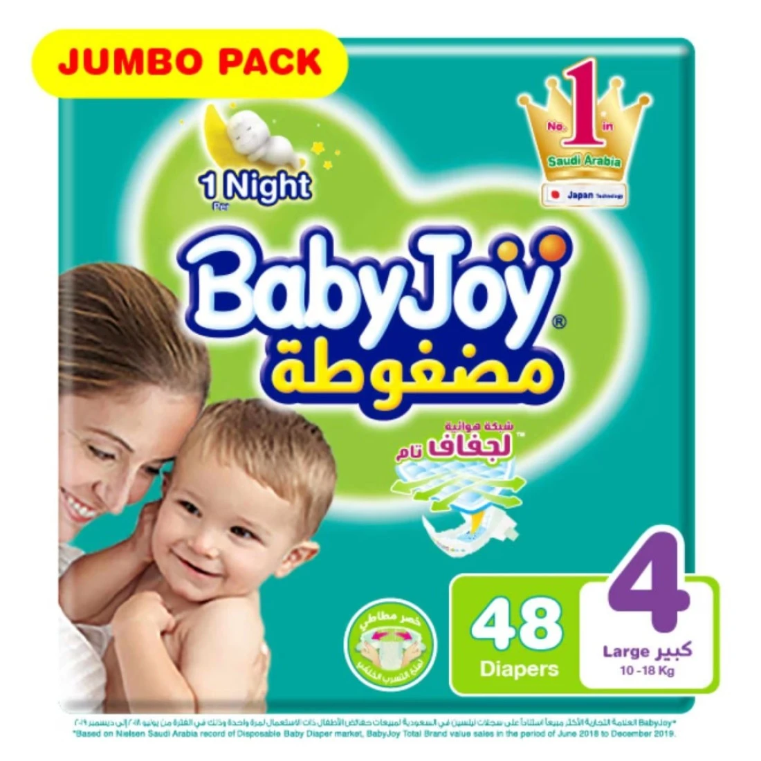 بيبي جوي حفاضات بالحشوة الماسية المضغوطة مقاس 4 كبير 10-18 كغ حزمة كبيرة 48 حفاض