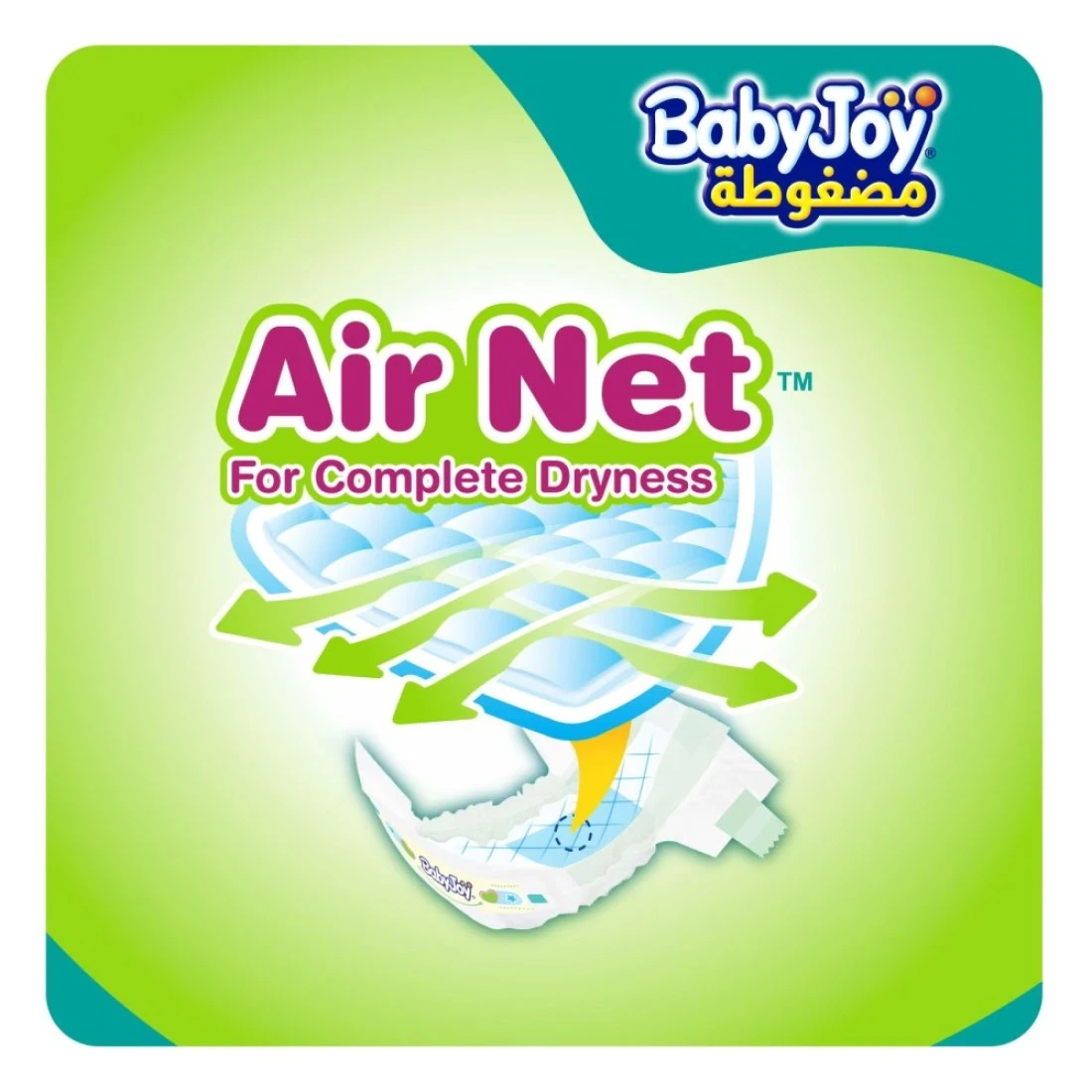 - تتميز حفاضات بيبي جوي بالحشوة الماسية المضغوطة بنمط فريد على شكل ماسة يضمن إمتصاصًا فائقًا وتوزيعًا فعالًا للرطوبة