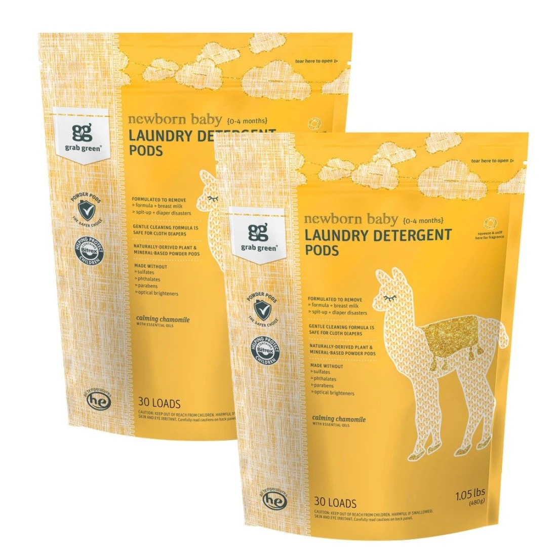 Grab Green Newborn Baby Laundry Detergent Pods 60 Count Calming Chamomile Scent Plant and Mineral Based Formulated to Tackle Newborn 04 Months Laundry Stains