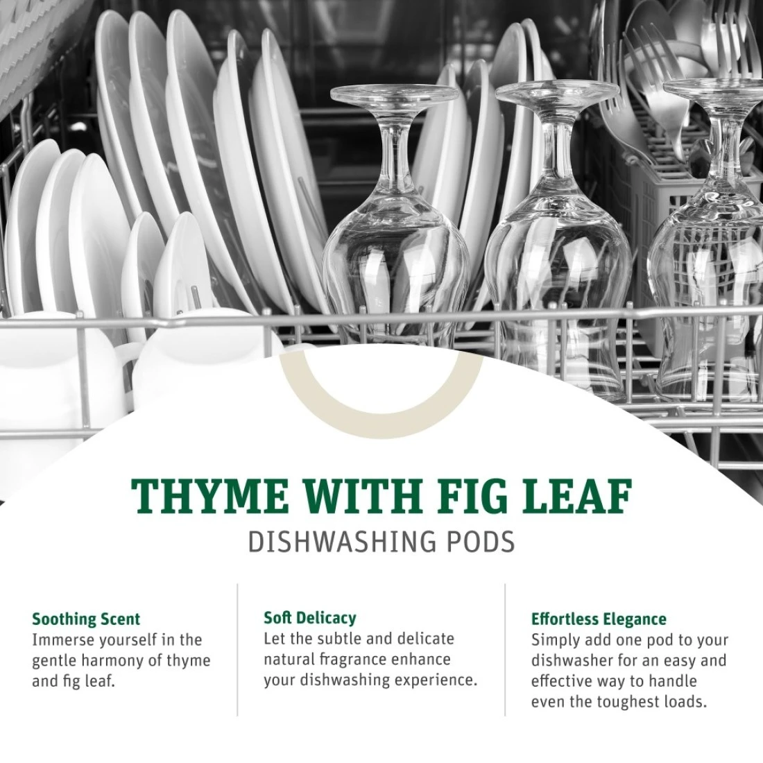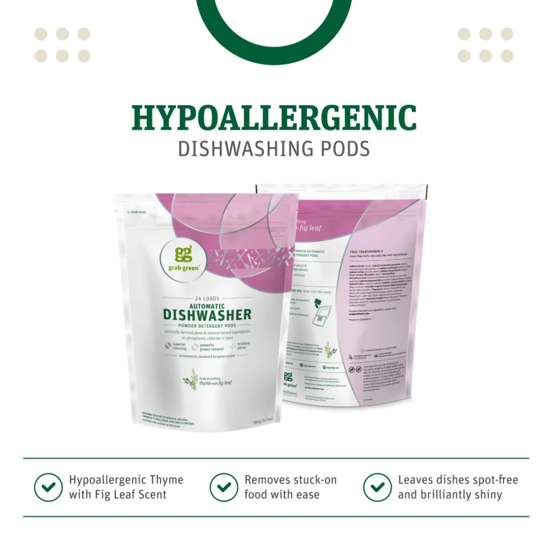 Grab Green Automatic Dishwashing Detergent Pods 24 Count Thyme Fig Leaf Scent Plant and Mineral Based Superior Cleaning Powerful Grease Removal