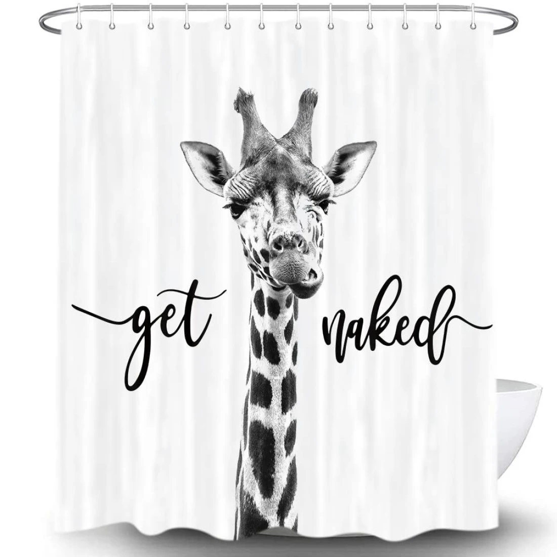 Funny Giraffe Get Naked Shower Curtain for Bathroom, Cute Animal Wildlife Safari Decor Bathtub Fabric Curtain, Waterproof Polyester Shower Curtain Sets with Hooks, 69 x 70