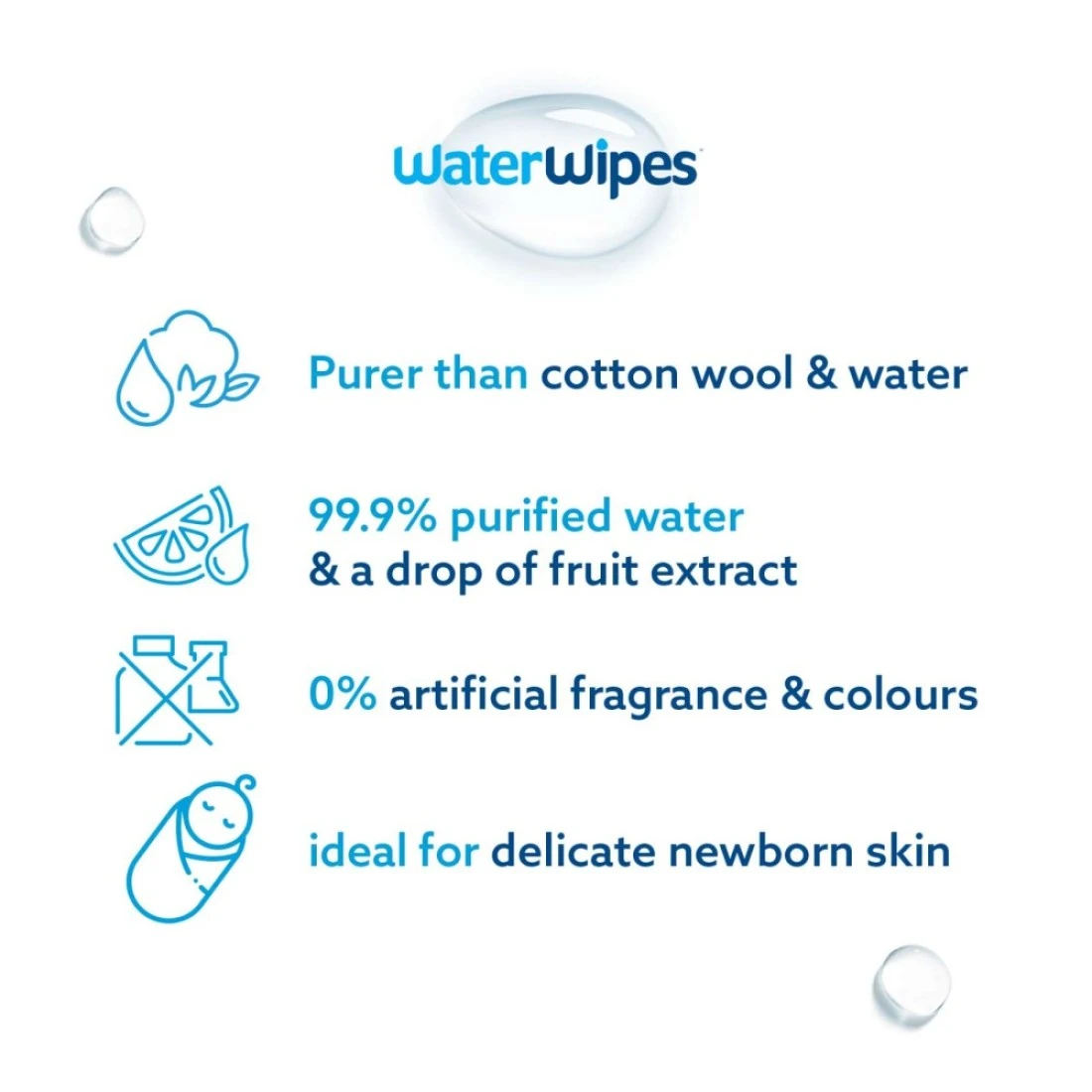 مناديل مبللة للأطفال من ووتر وايبس بيورست هي الخيار المثالي لبشرة الأطفال الحساسة. تم صنعها من 99.9٪ ماء مقطر ونقطة من مستخلص الفاكهة، هذه المناديل لطيفة وآمنة لصغيرك. تحتوي الحزمة المكونة من 12 على 60 منديل مما يضمن لك وجود الكثير منها لتلبية جميع احتياجات طفلك. تعد هذه المناديل خالية من المواد الكيميائية والعطور والمهيجات الأخرى مما يجعلها مثالية للأطفال الذين يعانون من الإكزيما أو الحساسية. احرص على إبقاء طفلك نظيفًا ومنتعشًا باستخدام المناديل المبللة للأطفال من ووتر وايبس بيورست .