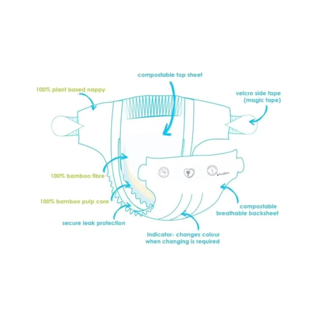 - مادة صديقة للبيئة: مصنوعة من الخيزران العضوي بنسبة 100%، هذه الحفاضات قابلة للتحلل البيولوجي ولطيفة على الكوكب