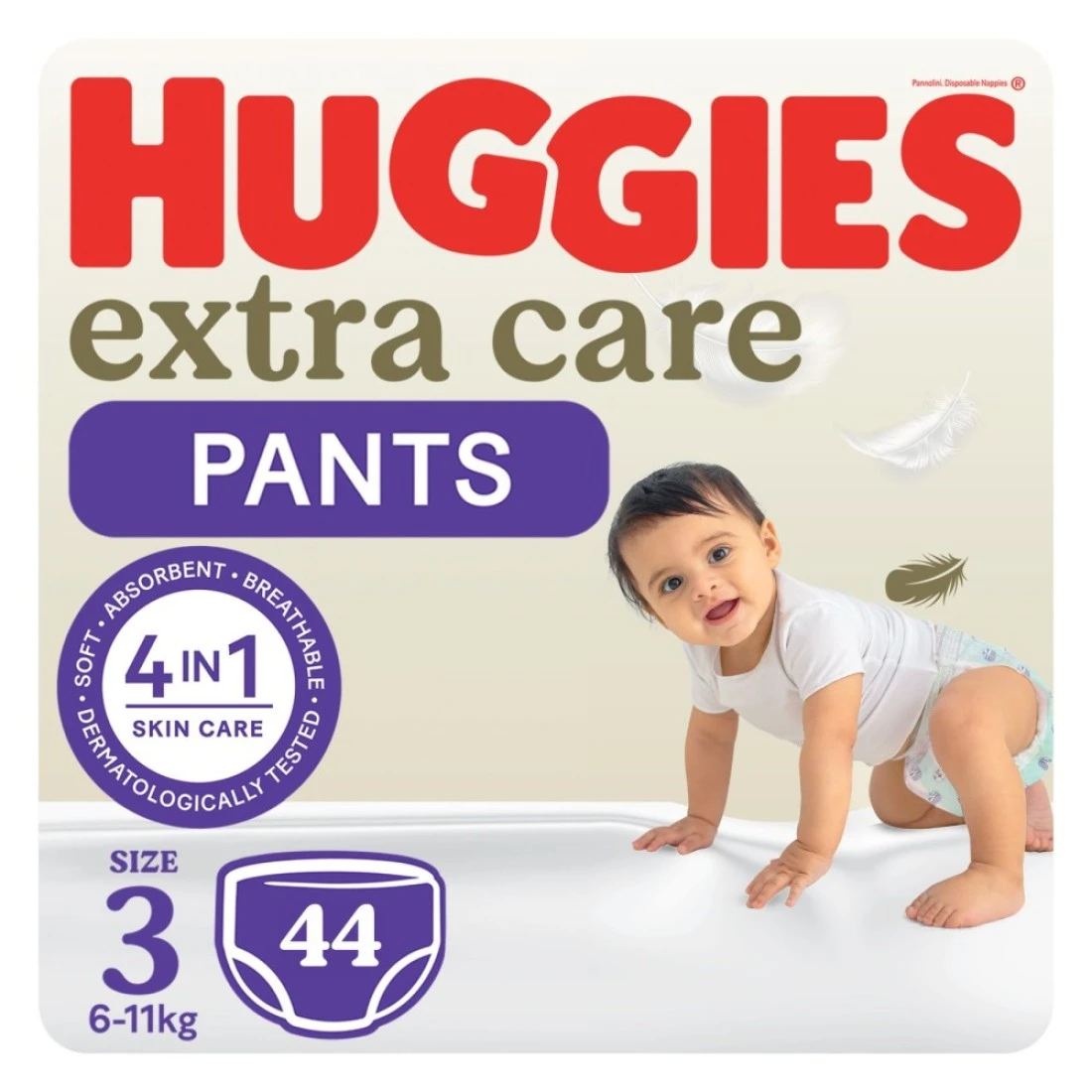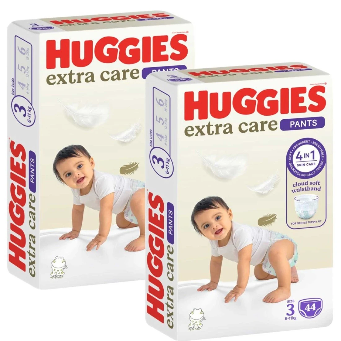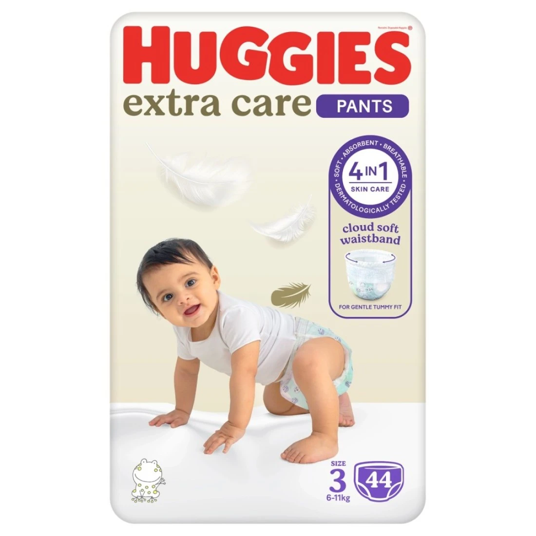 هجيز إكسترا كير كلود سوفت حفاض بتصميم سروال بخصر ناعم مقاس 3 للأطفال بوزن 6 إلى 11 كغ حزمة من 44 حفاض