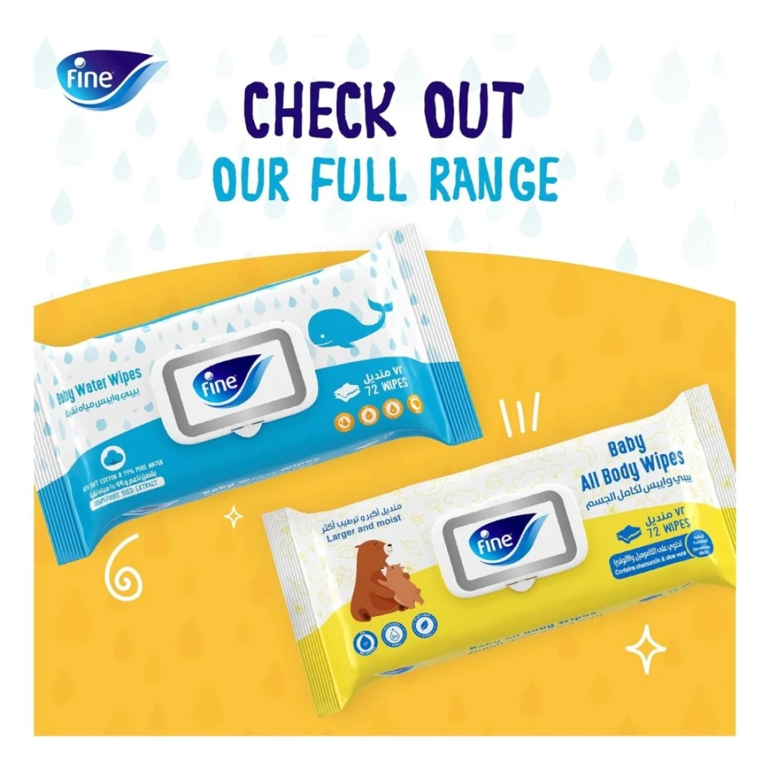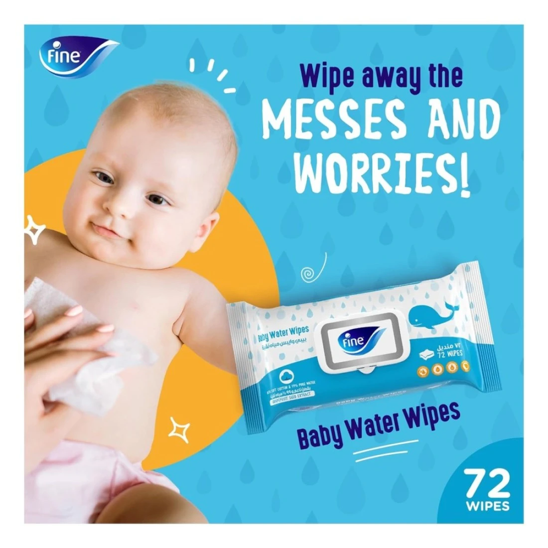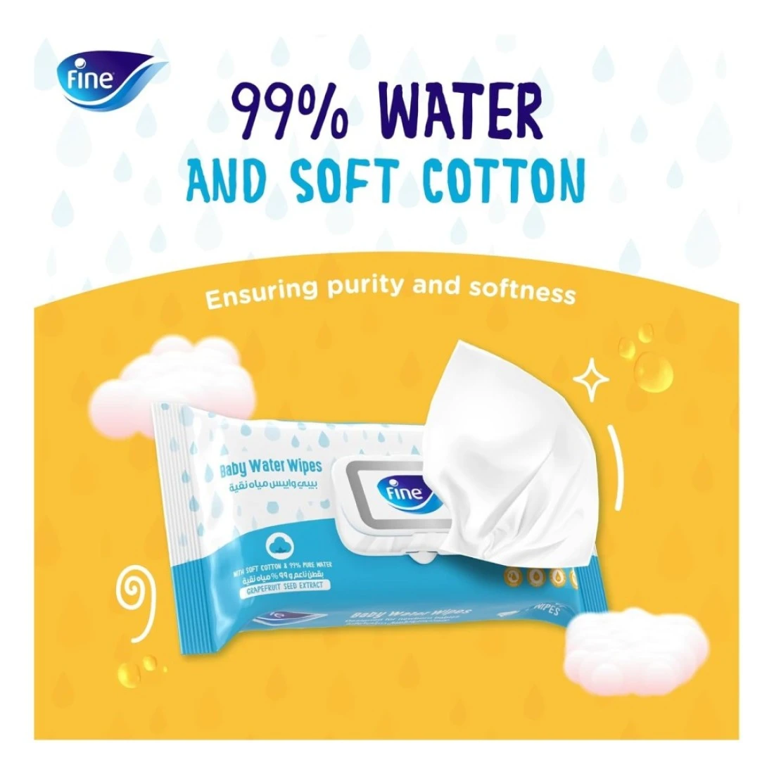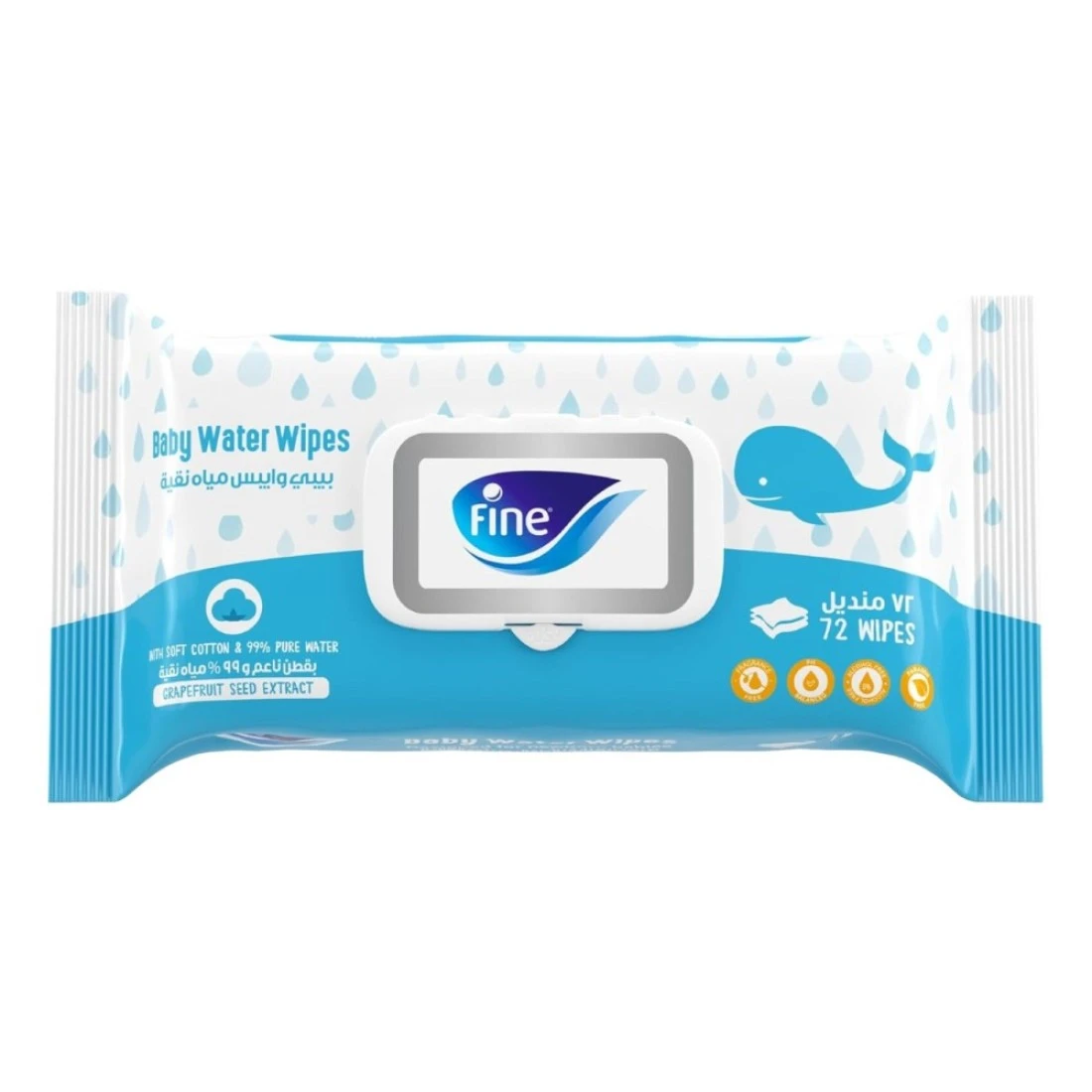 - مناديل الأطفال المائية: مصنوعة من 99% ماء ولمسة من المكونات الطبيعية، هذه المناديل آمنة للبشرة الحساسة