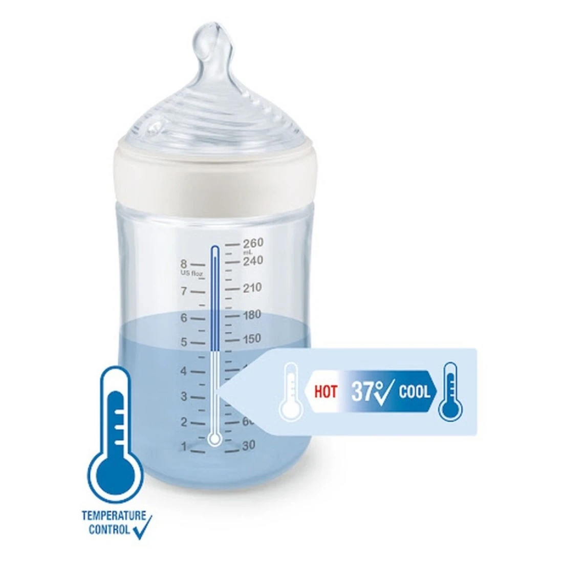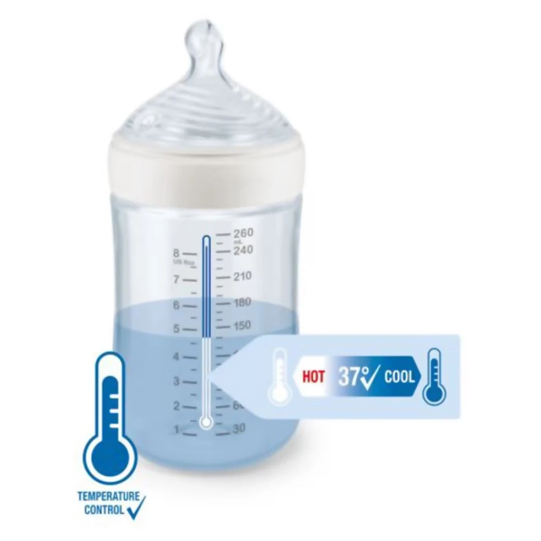 - تم دمج وظيفة التحكم في درجة الحرارة الجديدة في زجاجات نوك فيرست تشويس+ المصنوعة من مادة البولي أميد والبولي بروبيلين