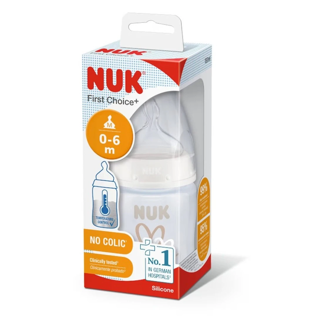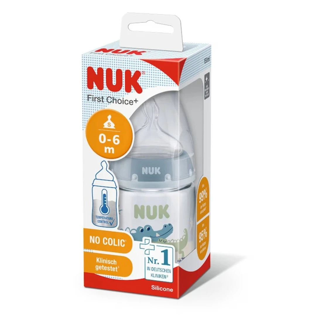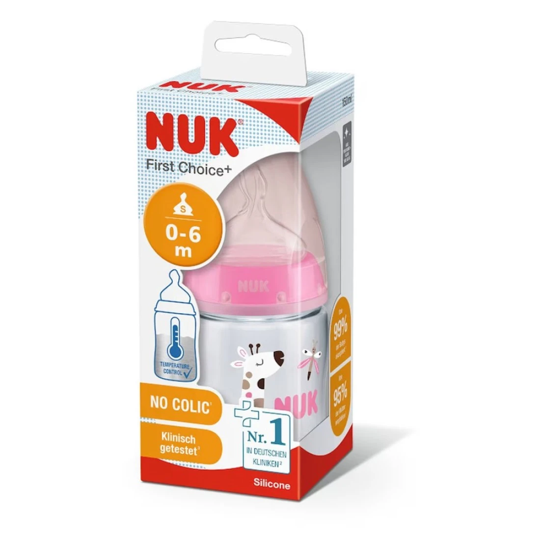 - للمساعدة في عدم إطعام طفلك محتويات القارورة الساخنة جدًا، تتميز قارورات الأطفال نوك قيرست تشويس+ الآن بمؤشر التحكم في درجة الحرارة الجديد من نوك