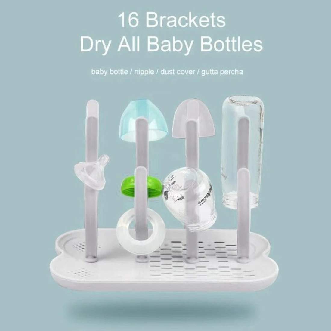 Large Capacity: 16 Peg Holder to dry bottles, Teats, Cups, Pump Parts and Accessories.