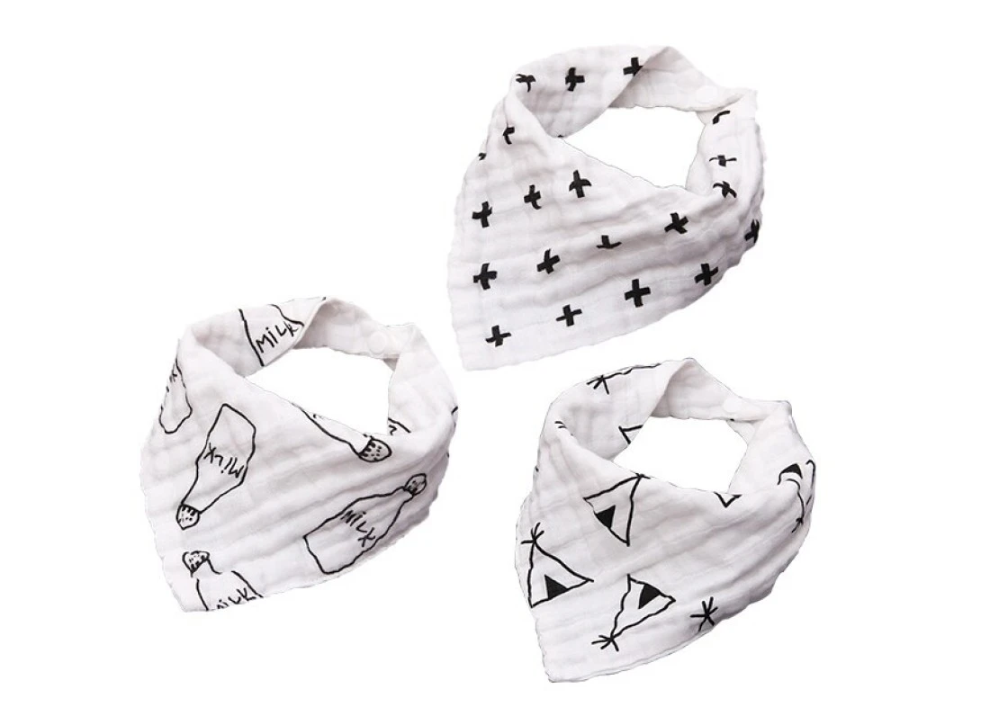 Eazy Kids - Muslin Bandana Bibs - Set of 3- Black & White