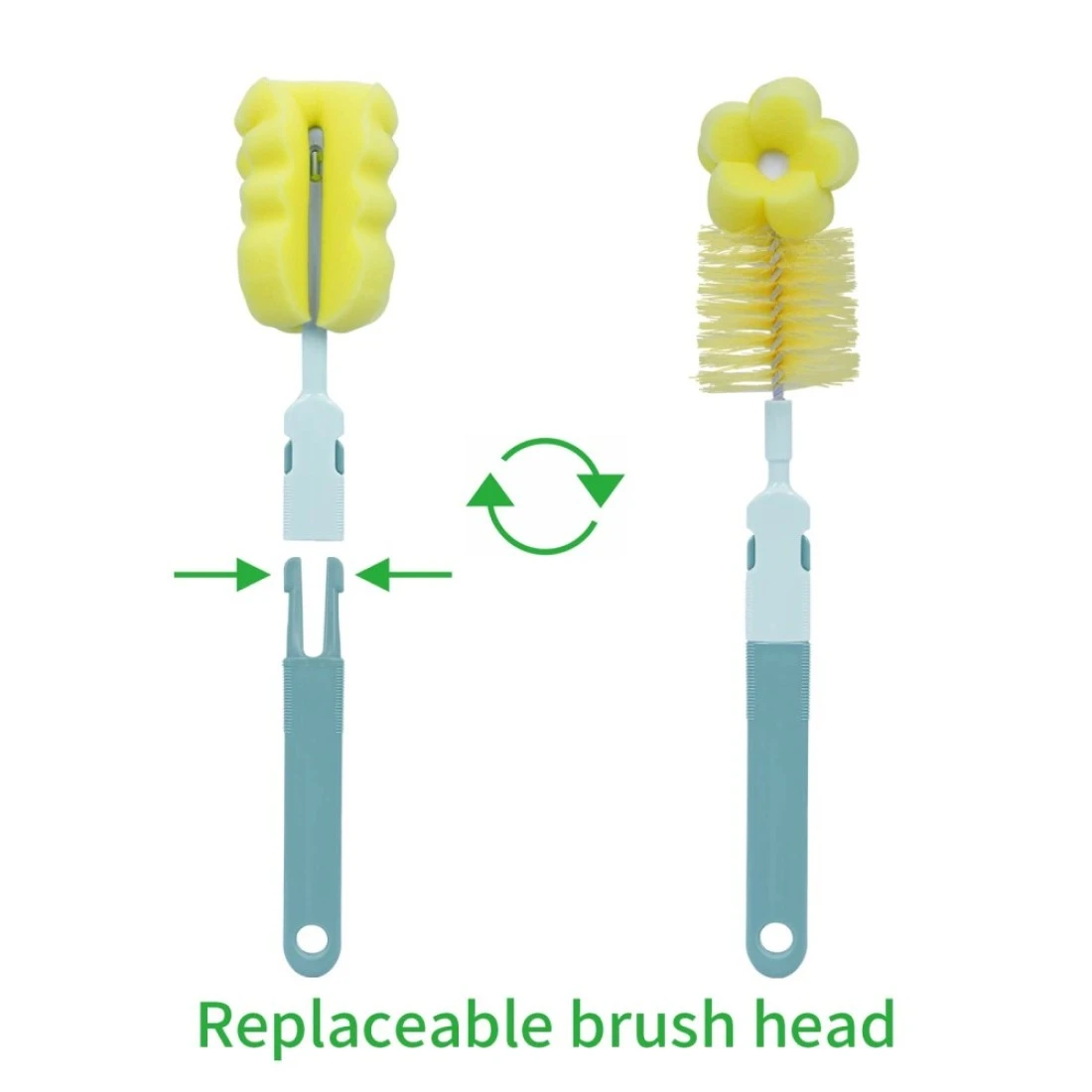 SEBIKAM Baby Bottle Brush 4 in 1 Bottle Scrubber Cleaner Brushes Set Sponge Milk Water Brush Kit Includes Baby Bottle Cleaner Brush Nipple Brush Straw Cleaner Green