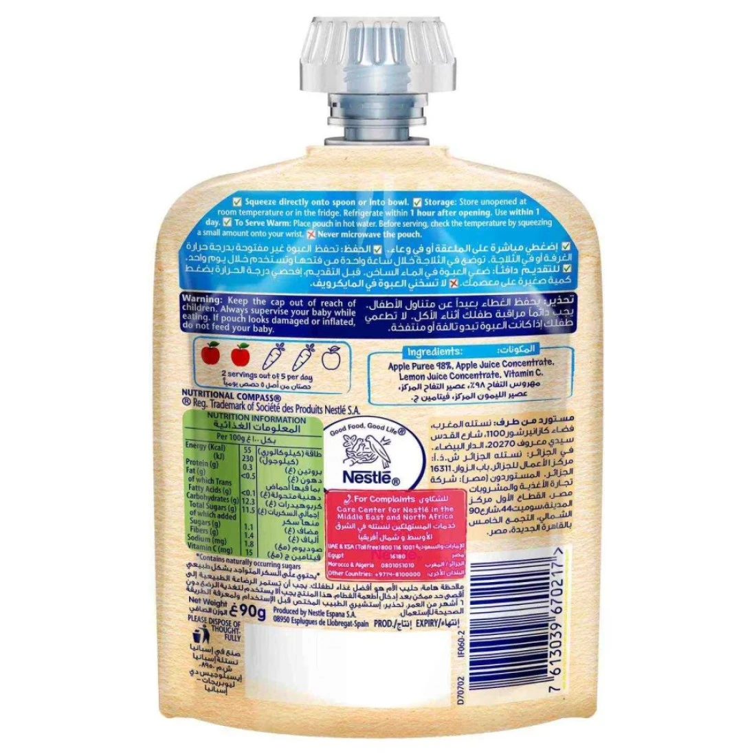 نستليه سيريلاك هريس الفاكهة ، طعام أطفال مغذي ولذيذ مصنوع من التفاح للمساعدة في تعريف طفلك على جودة الفاكهة من 6 أشهر. مصنوعة من الفواكه والخضروات الطبيعية المختارة بعناية 100٪ ، واختبارها الجودة ، ثم تذوق اختبارها من قبل الصغار أنفسهم ، لتعطيك الثقة في قرارك. يحتوي على فيتامين سي الذي يساعد على دعم صحة الدماغ والنمو المعرفي. لذلك ، عند إدخال المواد الصلبة لطفلك ، فإن هذه الحقيبة المريحة والجاهزة للخدمة مع صنبور التقديم ستسمح بمزيد من التحكم ، مما يعني نفايات أقل وفوضى أقل ، مثالية أثناء التنقل! كل واحد من بيورميس لدينا يمر أكثر من 100 فحص الجودة نستليه ، أنها لا تحتوي على السكروز المضافة أو الملح ، وليس الألوان الاصطناعية أو النكهات.