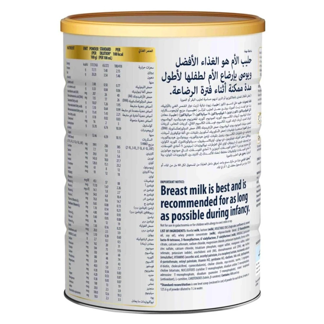 - يحتوي على حمض الدوكوساهيكسانويك وحمض الأراكيدونيك والعناصر الغذائية الأساسية