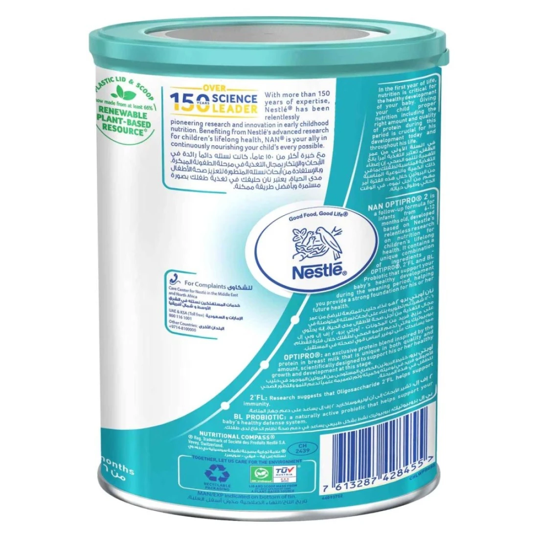تم تصميم تركيبة نستله نان أوبتيبرو 2 لمتابعة الرضاعة للأطفال الرضع من سن 6 إلى 12 شهرًا. تم تركيبها خصيصًا لتوفير العناصر الغذائية الأساسية التي تدعم النمو والتطور الشامل لطفلك. تحتوي هذه التركيبة على أوبتيبرو، وهو مزيج من البروتين يشبه إلى حد كبير تركيبة حليب الأم، مما يضمن الهضم الأمثل وامتصاص العناصر الغذائية بكفاءة. كما تحتوي على فيتامينات ومعادن مهمة، مثل الحديد والكالسيوم، والتي تعد ضرورية للنمو الصحي. بفضل تركيبتها سهلة الهضم، تعد تركيبة نستله نان أوبتيبرو 2 لمتابعة الرضاعة خيارًا رائعًا لدعم الاحتياجات الغذائية لطفلك خلال هذه المرحلة المهمة من نموه.